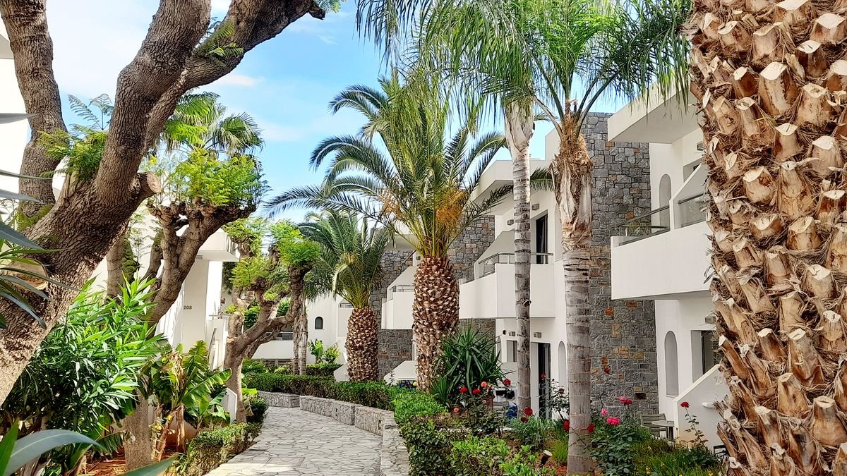Położony w pięknym, zadbanym ogrodzie z egzotycznymi palmami, poleca się na beztroskie rodzinne wakacje pełne słońca i relaksu! W restauracjach posmakujesz smacznej kuchni lokalnej i międzynarodowej, a w barach napijesz się kolorowych koktajli. Na miejscu wiele atrakcji dla całej rodziny, m.in. baseny i animacje, a specjalnie dla najmłodszych plac zabaw. Odwiedź hotelową siłownię jeśli na co dzień dbasz o sylwetkę, a jeśli potrzebujesz dodatkowego relaksu wybierz się do centrum wellness, które oferuje zabieg pielęgnacyjne i relaksacyjne masaże. Bardzo miła i pomocna obsługa sprawi, że wakacje upłyną w świetnej atmosferze. Do zobaczenia w słonecznej Grecji!