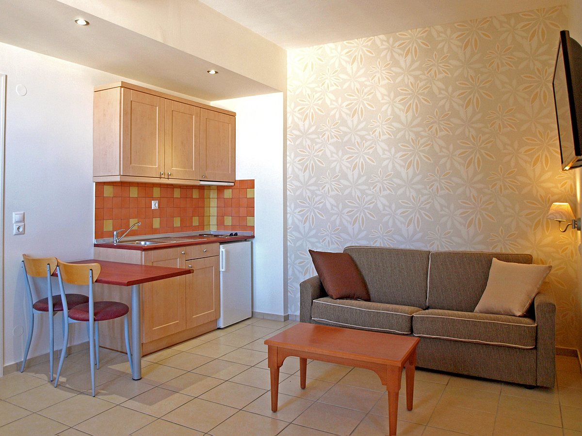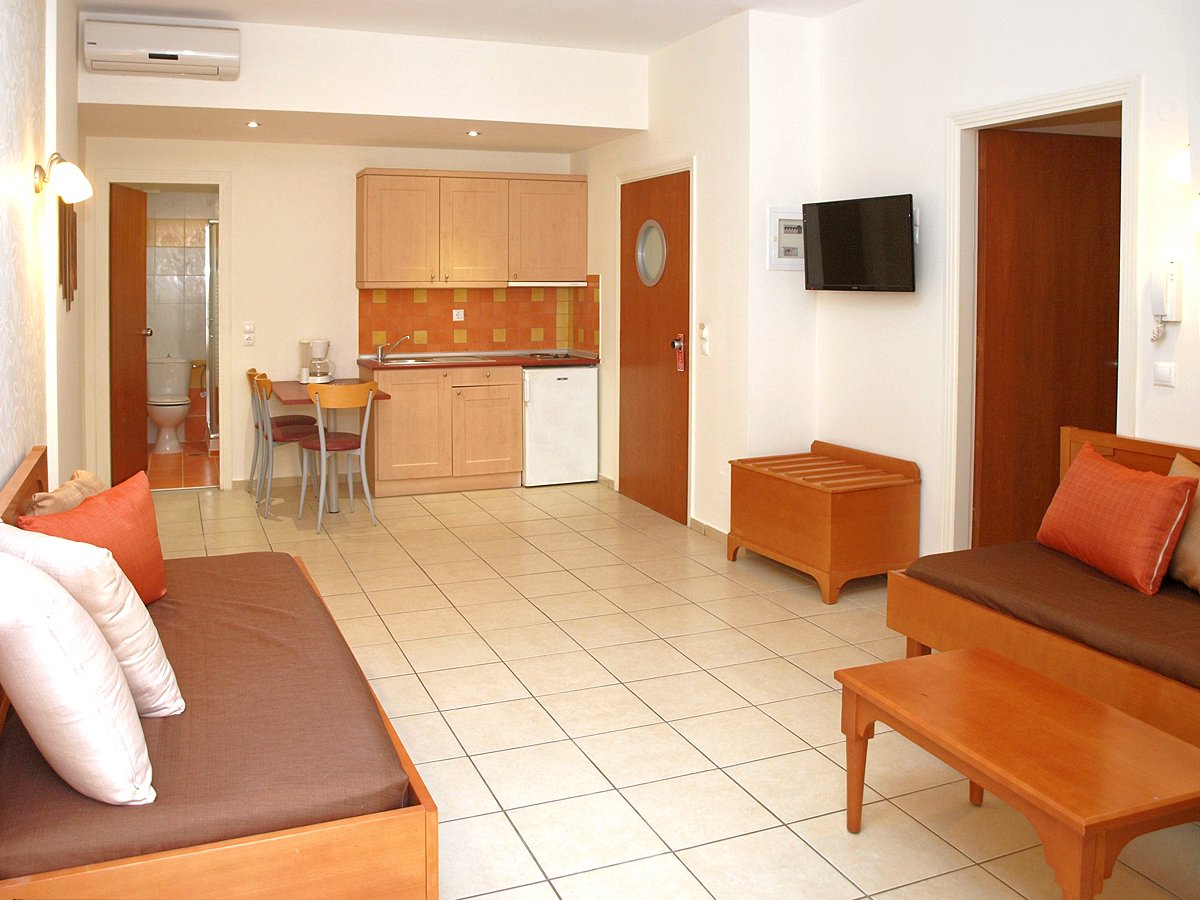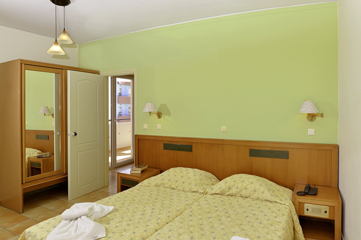 standardowy: 2-os. (możliwość 1 dostawki), ok. 25-30 m², zadbane, indywidualnie sterowana klimatyzacja, łazienka (wanna lub prysznic, wc; suszarka), internet bezprzewodowy, telewizja satelitarna, telefon, aneks kuchenny, zestaw do kawy/herbaty, lodówka; bezpłatne łóżeczko dla dziecka do 2 lat na zamówienie przed przyjazdem; balkon (stolik i krzesełka).