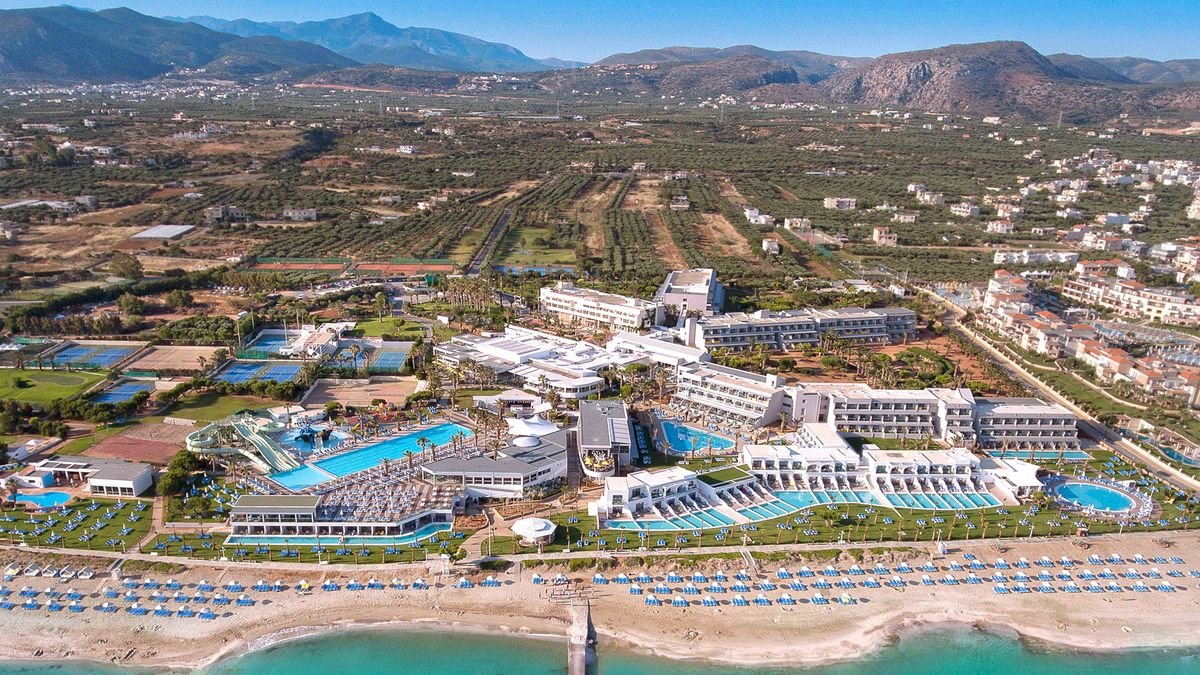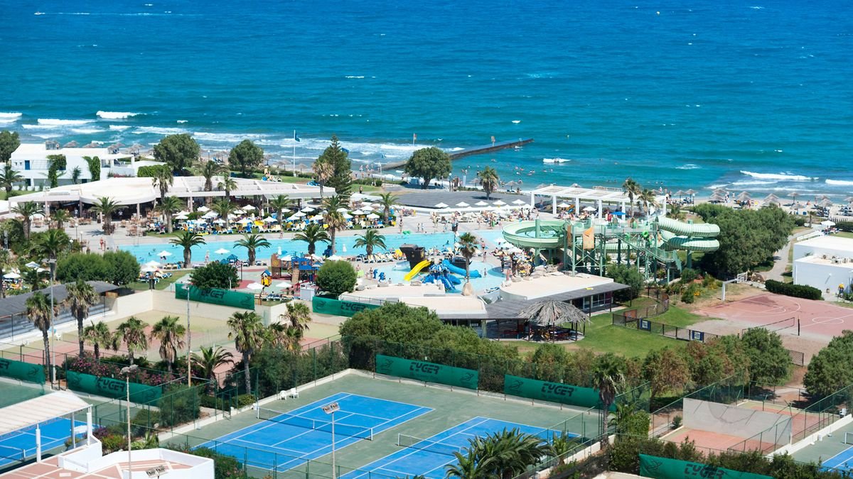 Położony w zielonym ogrodzie przy piaszczystej plaży, wyróżnionej certyfikatem Błękitna Flaga, jest wspaniałym miejscem na rodzinne wakacje. Szeroka oferta sportowo-rekreacyjna: kilka basenów, w tym ze zjeżdżalniami, siłownia, a także 28 kortów tenisowych z 3 różnymi nawierzchniami to nie lada gratka dla miłośników aktywnego wypoczynku! Dzieciaki spędzą beztroskie chwile w miniklubie oraz podczas zajęć, prowadzonych przez niezwykle sympatycznych i oddanych animatorów. Na uwagę zasługuje tutaj szeroki wybór restauracji, serwujących pyszne i różnorodne dania kuchni greckiej i międzynarodowej. Szczególnie ceniona jest również obsługa hotelowa, dla której najważniejszą rzeczą jest zadowolenie i radość Gości.