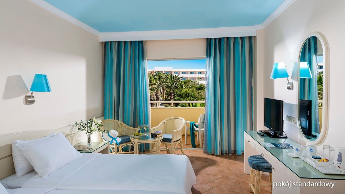 standardowy: 2-os. (możliwość 1 dostawki), ok. 23 m², nowoczesny, klimatyzowany, łazienka (prysznic, wc; suszarka), internet bezprzewodowy, telewizja satelitarna, telefon, lodówka, zestaw do kawy/herbaty, sejf; łóżeczko dla dziecka do 2 lat na zamówienie przed przyjazdem (płatne); balkon, taras lub ogródek (stolik i krzesełka); widok na morze za dopłatą; rodzinny superior: 2-os. (możliwość 1 dostawki dla os. dorosłej lub 2 dzieci), ok. 40 m², klimatyzowany, łazienka (wanna, wc; suszarka), internet bezprzewodowy, telewizja satelitarna, telefon, lodówka, zestaw do kawy/herbaty, sejf; łóżeczko dla dziecka do 2 lat na zamówienie przed przyjazdem (płatne); balkon, taras lub ogródek (stolik i krzesełka); pokój rodzinny superior za dopłatą; widok na morze za dopłatą.