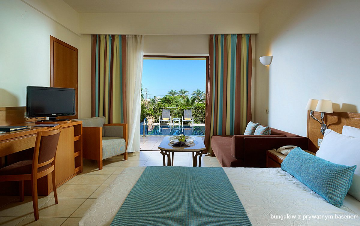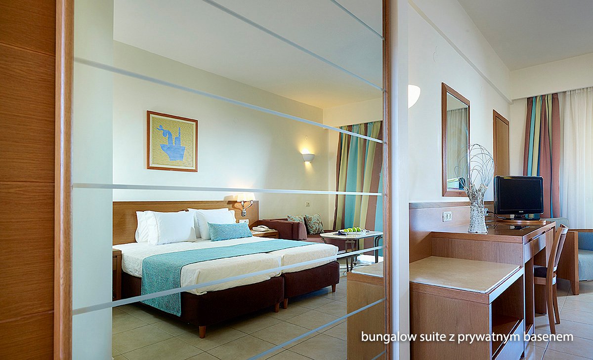 Idealne połączenie luksusu i komfortu, z dbałością o każdy szczegół. Położony na rozległym terenie, tuż przy piaszczystej plaży z bezpłatnym serwisem, oferuje najwyższy standard wypoczynku. Profesjonalnie prowadzony, urządzony w tradycyjnym kreteńskim stylu wakacyjny kompleks ma wszystko to, co potrzebne jest do wygodnego wypoczynku. Elegancko urządzone pokoje i bungalowy, niektóre z dostępem do basenu, wyposażone są we wszystkie udogodnienia. Wspaniałym miejscem na relaks będzie hotelowe centrum spa z basenem krytym, do dyspozycji Gości są 4 baseny i 2 jacuzzi, a na smakoszy czekają restauracje serwujące pyszną kuchnię z całego świata. Czego chcieć więcej?