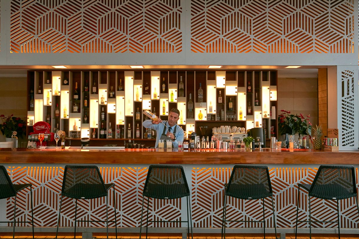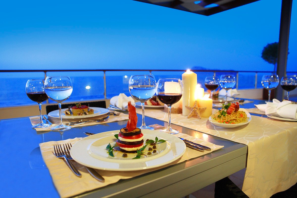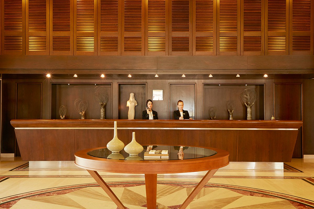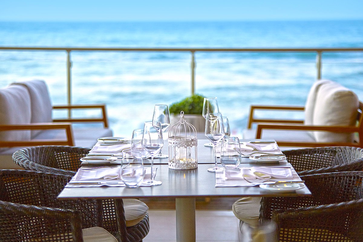 pięciogwiazdkowy, luksusowy i nowoczesny, zbudowany w 2002 r., rozbudowany i odnowiony w 2008 r., 254 pokoje, 2 budynki, 2 piętra, 8 wind, przestronne, eleganckie lobby, całodobowa recepcja, restauracja Elia – dania w formie bufetu, kuchnia międzynarodowa, dostępne foteliki i menu dla dzieci, dieta bezglutenowa (na zapytanie), restauracja Ta Nissia – á la carte, kuchnia włoska, dostępne foteliki dla dzieci, restauracja Thalassa przy plaży – á la carte, kuchnia śródziemnomorska, restauracja Galazio przy plaży – á la carte, tylko dla dorosłych, 5 barów: w lobby, 2 przy basenie, przy plaży, w ogrodzie; minimarket, jubiler, kantor, parking, taras z widokiem na morze, ogród; centrum konferencyjne dla 600 osób; bezpłatny internet bezprzewodowy; za opłatą: opiekunka do dziecka, pralnia; akceptowane karty kredytowe: Visa, MasterCard, American Express, Diners Club.