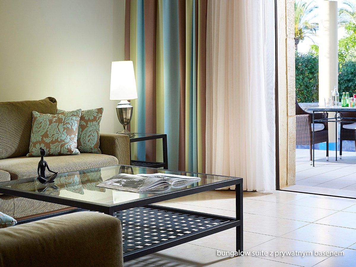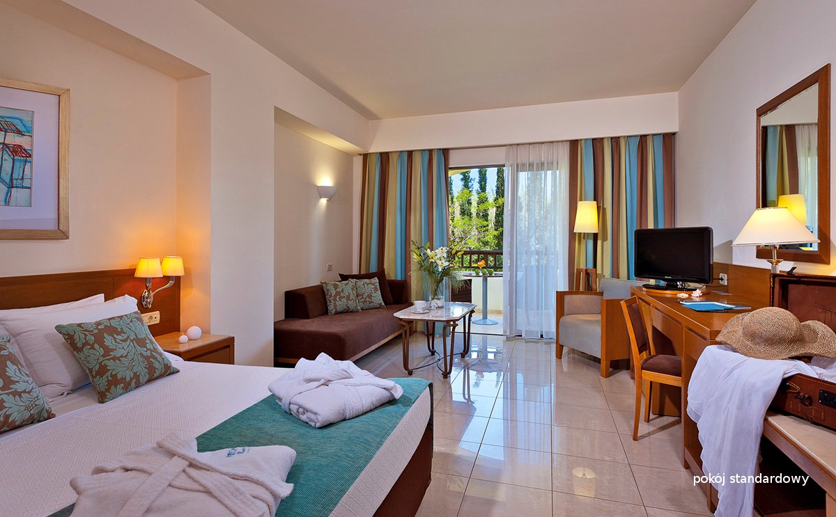 standardowy: 2-os. (możliwość 1 dostawki – sofa), ok. 27-29 m², elegancki i zadbany, indywidualnie sterowana klimatyzacja, łazienka (prysznic, wc; suszarka, szlafrok), internet bezprzewodowy, telewizja satelitarna, telefon, lodówka, zestaw do kawy/herbaty, minibar (płatny); bezpłatne łóżeczko dla dziecka do 2 lat na zamówienie przed przyjazdem; balkon, taras lub ogródek (stolik i krzesełka), widok na ogród, góry lub basen; bungalow: 2-os. (możliwość 1 dostawki dla os. dorosłej lub 2 dzieci), ok. 27-29 m², elegancki i zadbany, wyposażenie jak w pokoju standardowym, balkon lub taras (stolik i krzesełka; suszarka), widok na ogród lub basen; dostępny również bungalow z prywatnym basenem: basen, ok. 12 m², przy basenie parasole i leżaki; bungalow suite z prywatnym basenem: 2-os. (możliwość 1 dostawki dla os. dorosłej lub 2 dzieci – sofa), ok. 45 m², wyposażenie jak w bungalowie, basen, ok. 15 m², jacuzzi, taras (leżaki), widok na basen.