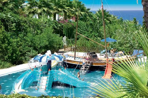Utrzymany w pięknym, śródziemnomorskim stylu, jest idyllicznie położony na wzniesieniu schodzącym do prywatnej plaży i otoczony wspaniałymi ogrodami, w które wkomponowano hotelowe budynki i baseny. Eleganckie wnętrza i przyjemne pokoje zapewniają wypoczynek na najwyższym poziomie. Rewelacyjny kompleks basenów, zjeżdżalnie dla dorosłych i dla dzieci, dużo atrakcji sportowych to świetna zabawa i łatwy sposób na wspaniałą kondycję! Daj się skusić hotelowemu Spa z relaksującymi masażami i zanurz się w luksusie!