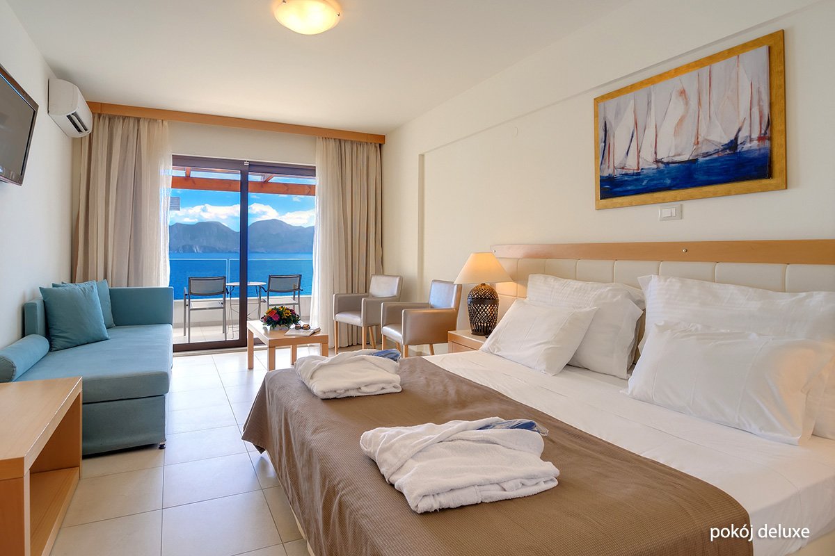 deluxe: 2-os. (możliwość 1 dostawki), 21 m², nowoczesny i elegancki, łazienka (wanna lub prysznic, wc; suszarka), bezpłatny internet bezprzewodowy, telewizor, lodówka, sejf (płatny); deluxe z prywatnym basenem w części Villas: 2-os. (możliwość 1 dostawki); wyposażenie jak w pokoju deluxe, dodatkowo prywatny basen; pokój deluxe i deluxe z prywatnym basenem za dopłatą.