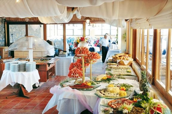 śniadanie (7.30-10.00), obiad (13.00-14.30), kolacja (18.30-21.00) w formie bufetu w restauracji Bellavista; przekąski w wyznaczonym barze (10.00-12.00 i 16.00-18.00); napoje bezalkoholowe i lokalne napoje alkoholowe (11.00-22.45) w wyznaczonym barze; wymagane noszenie opasek all inclusive.