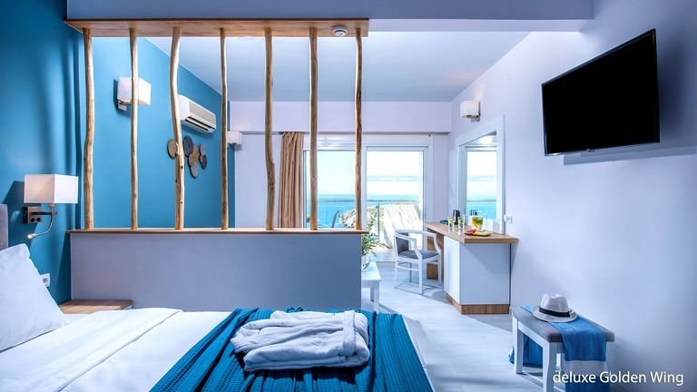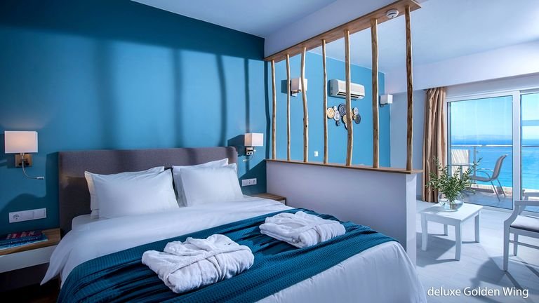 Cudownie położony na zboczu wzgórza, z bajecznym widokiem na zatokę Mirabello i turkusowe morze! Zachwyca stylowymi wnętrzami i eleganckimi pokojami. Życie w hotelu toczy się przy basenach z tarasami do opalania, tylko kilka kroków stąd do cudownej, piaszczystej plaży Voulisma – jednej z najpiękniejszych na wyspie. Do dyspozycji Gości restauracja z tarasem i aż 3 bary oraz centrum spa, w którym można m.in. zrelaksować się w saunie lub jacuzzi. Kameralna atmosfera, świetna obsługa i doskonała lokalizacja to zapowiedź wyjatkowgo wypoczynku! Polecamy zwiedzić okolicę, w szczególności romantyczne Agios Nikolaos z pięknym jeziorem Voulismeni.