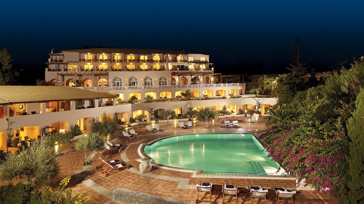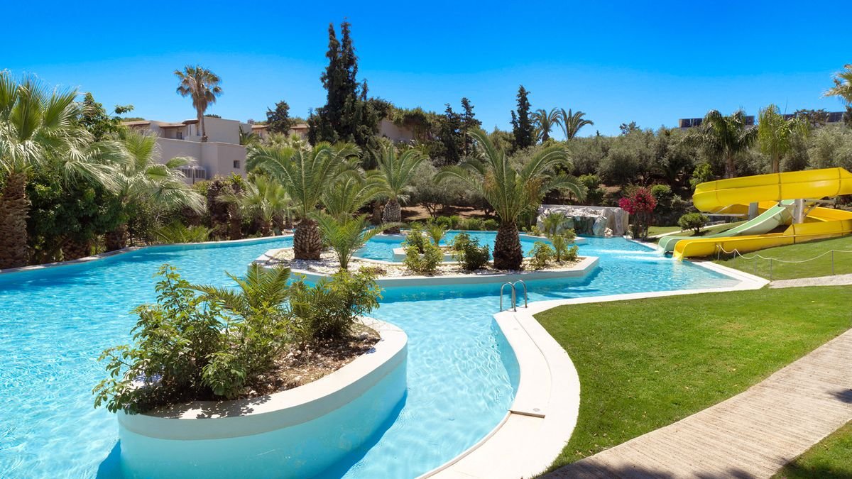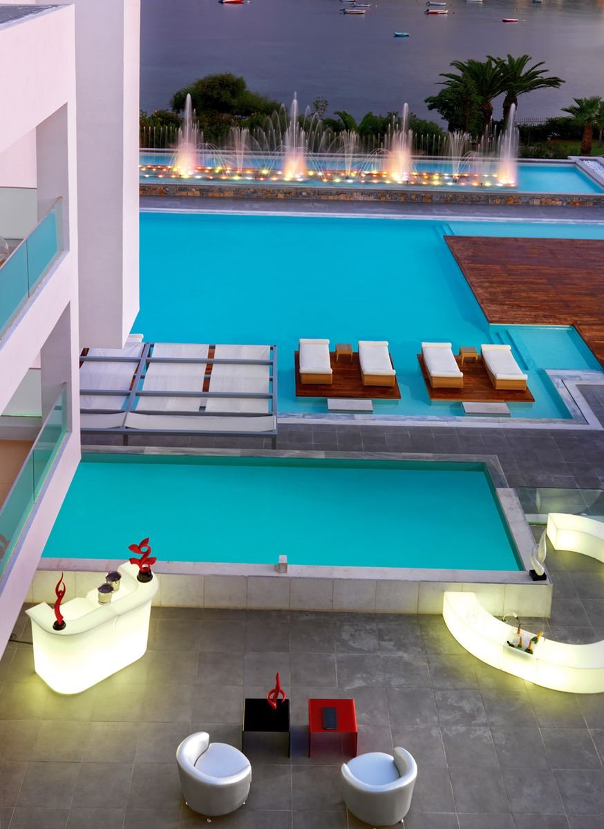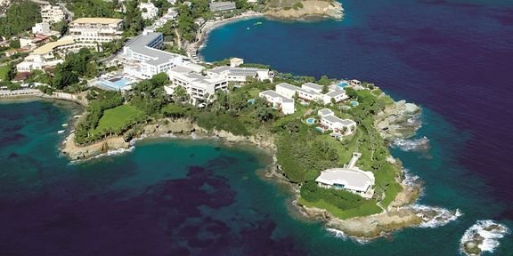 Stylowy, atrakcyjnie położony na prywatnym półwyspie, tuż przy dwóch plażach, zapewnia niezapomniane wakacje. Hotel należy do kompleksu o powierzchni ok. 167 000 m², na terenie którego znajduje się park rozrywki i piękny ogród. Komfortowy wypoczynek zapewniają funkcjonalnie urządzone pokoje, a hotelowe restauracje oferują dania kuchni greckiej, włoskiej oraz międzynarodowej. Idealna propozycja na rodzinny wypoczynek.