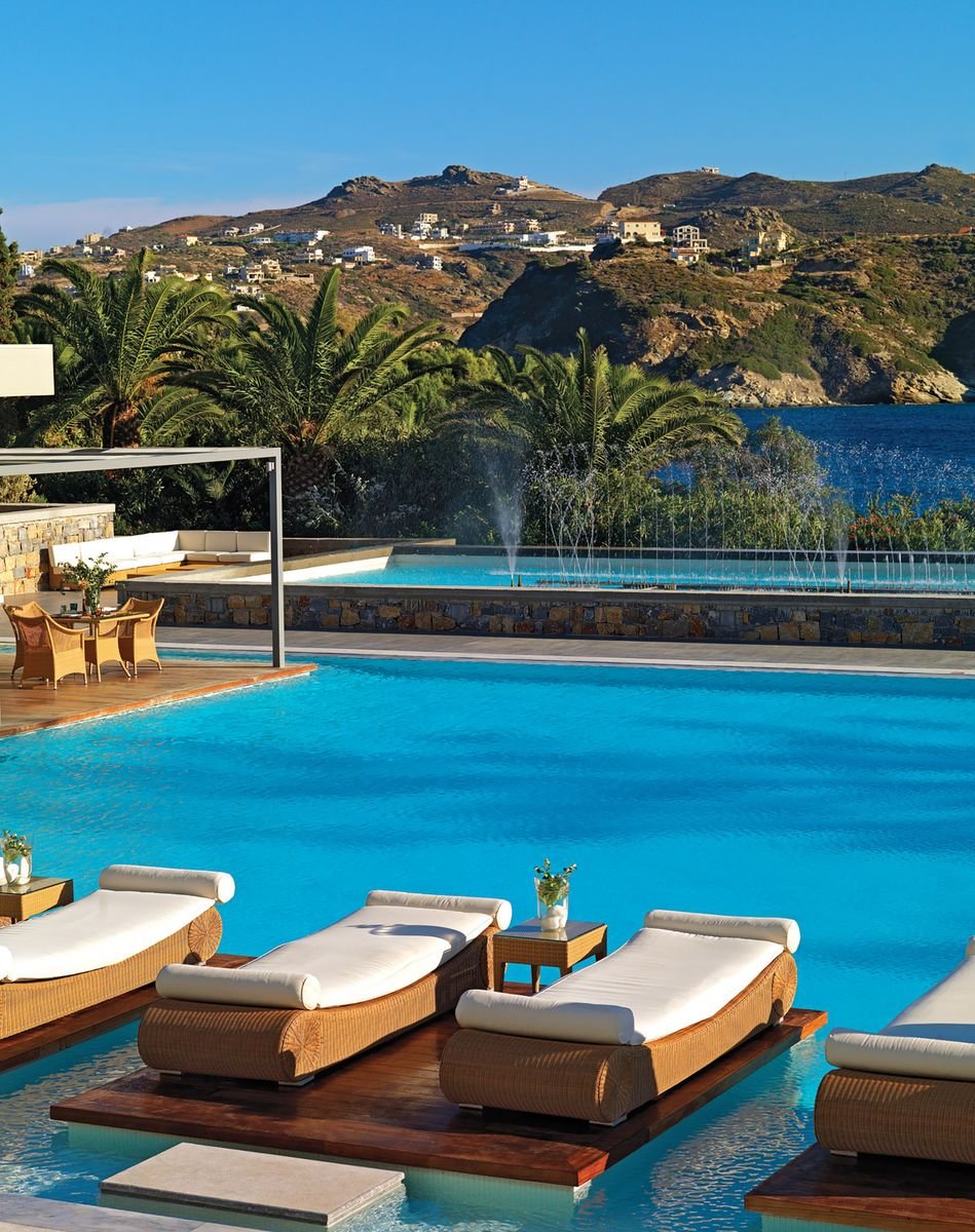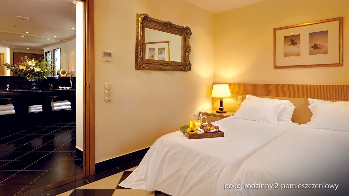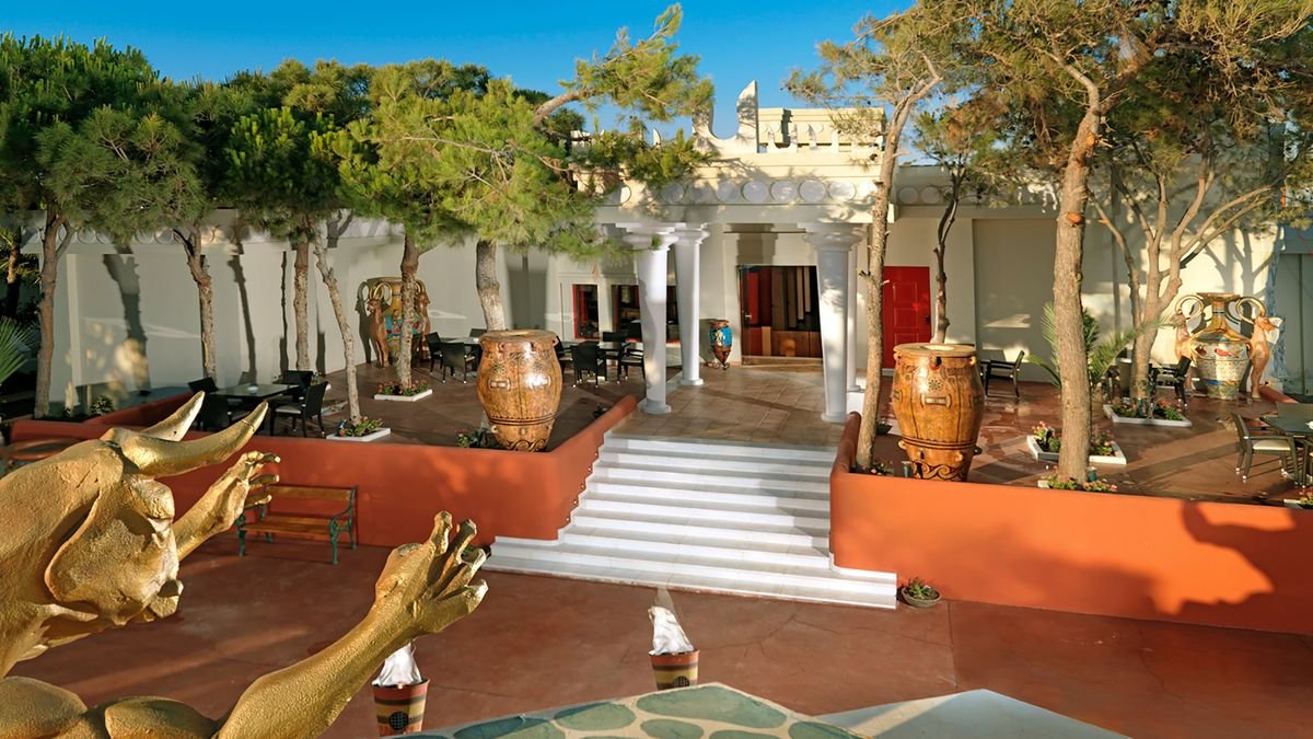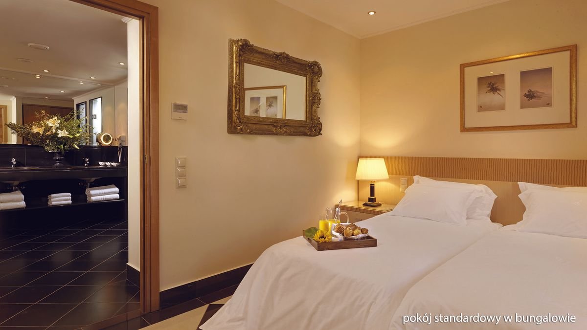 Stylowy, atrakcyjnie położony na prywatnym półwyspie, tuż przy dwóch plażach, zapewnia niezapomniane wakacje. Hotel należy do kompleksu o powierzchni ok. 167 000 m², na terenie którego znajduje się park rozrywki i piękny ogród. Komfortowy wypoczynek zapewniają funkcjonalnie urządzone pokoje, a hotelowe restauracje oferują dania kuchni greckiej, włoskiej oraz międzynarodowej. Idealna propozycja na rodzinny wypoczynek.