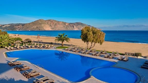 Położony na rozległym terenie pośród gajów oliwnych i drzew awokado, zapewnia komfortowy pobyt i mnóstwo atrakcji. Zrelaksuj się przy basenach i na prywatnej, długiej, piaszczystej plaży, zagraj w koszykówkę, siatkówkę lub tenisa albo wypożycz rower i zwiedzaj okolicę. Eleganckie hotelowe restauracje kuszą zmysły autentyczną grecką kuchnią, włoskimi przysmakami i międzynarodowym menu à la carte, a miła i pomocna obsługa dba o to, aby każdy poczuł sie tu wyjątkowo.