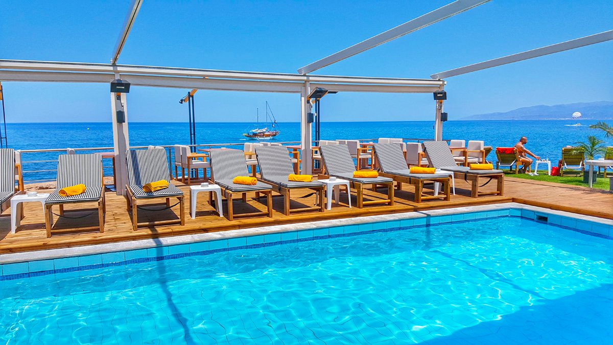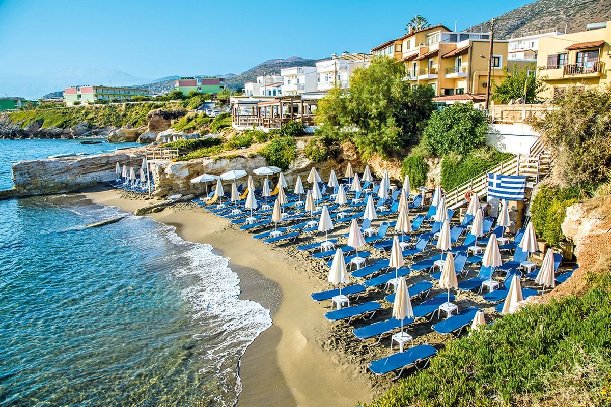 Cyrrus, publiczna, piaszczysta, łagodne zejście do morza, ok. 30 m od hotelu, zejście schodami; West Porto Greco, publiczna, piaszczysta, łagodne zejście do morza, ok. 20 m od hotelu, zejście schodami; na plażach parasole, leżaki i ręczniki płatne.