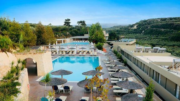 Spektakularny widok na morze i zielone plantacje drzew oliwnych, spokojna okolica i kameralna atmosfera – wymarzone miejsce dla zakochanych! Niskie budynki wzorowane na tradycyjnej kreteńskiej zabudowie oraz kuchnia bazująca na świeżych produktach od lokalnych dostawców wprowadzą Gości w autentyczną, grecką atmosferę. Centrum hotelu jest basen infinity – idealny na relaks w ciągu dnia, wieczorem miejsce do podziwiania zachodów słońca przy lampce wina. Komfortowe pokoje urządzone są w minimalistycznym stylu. Na miejscu również przyjemne centrum wellness z krytym basenem, jacuzzi i sauną. Warto wybrać się na plażę, do której dowozi bezpłatny hotelowy bus lub do Rethymno z licznymi sklepami i tawernami.