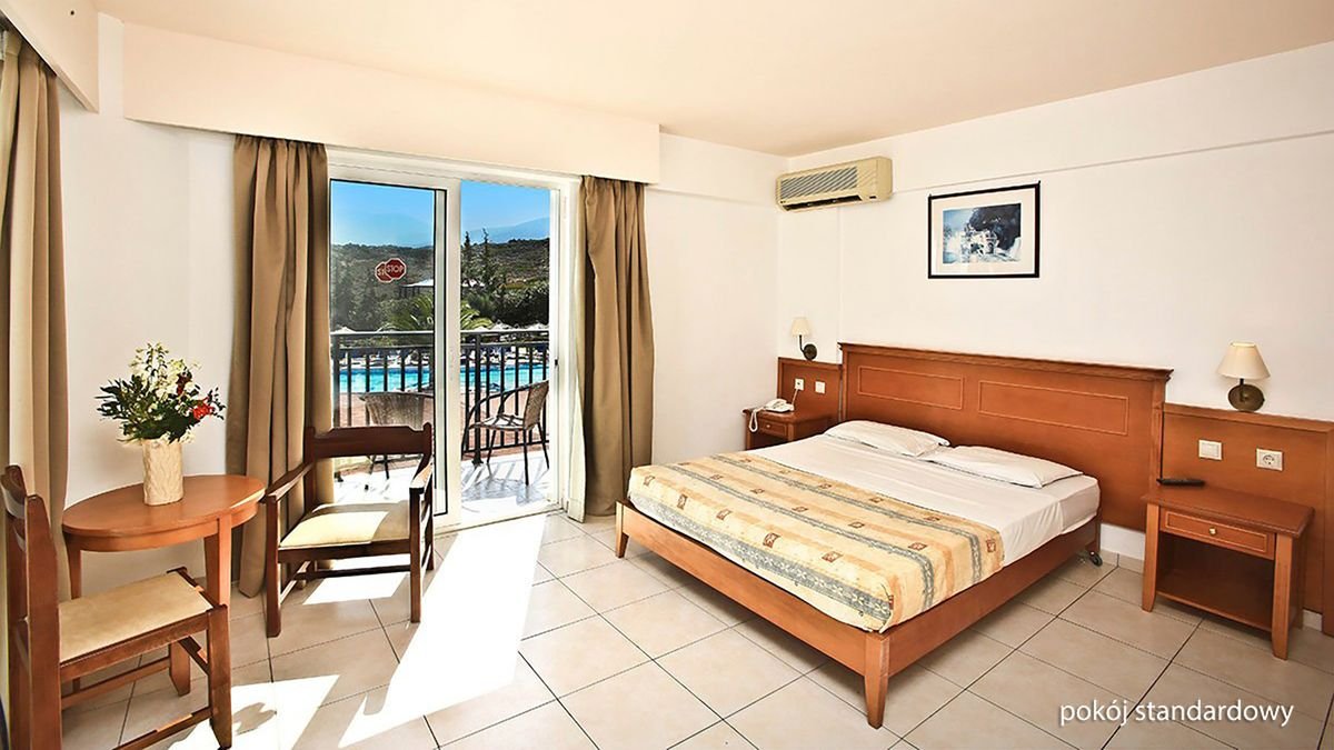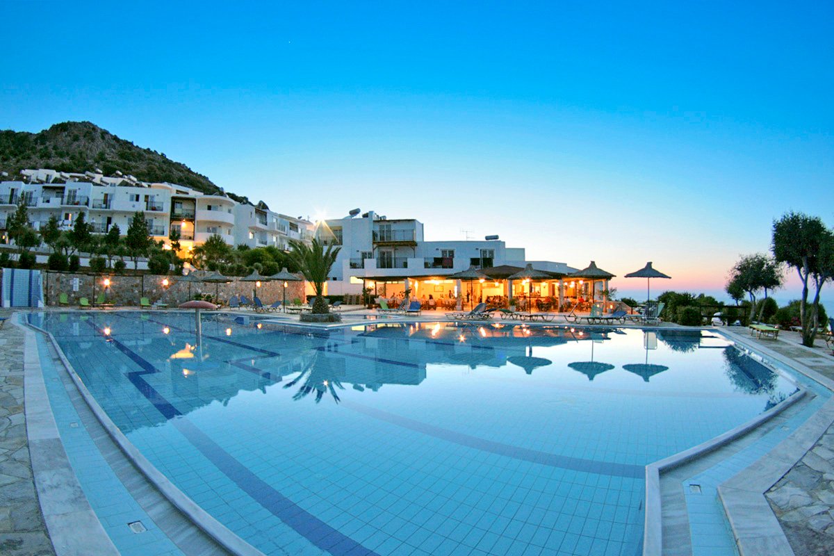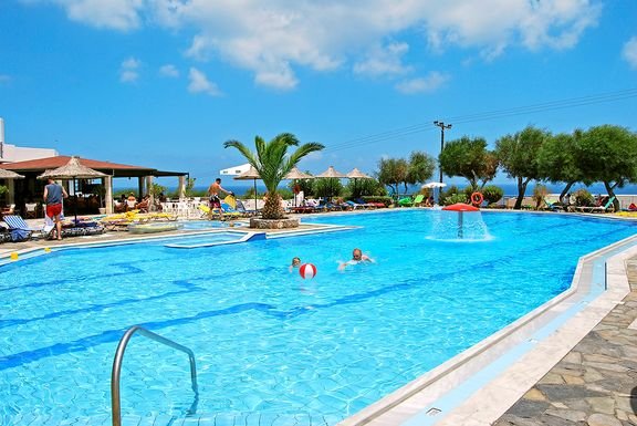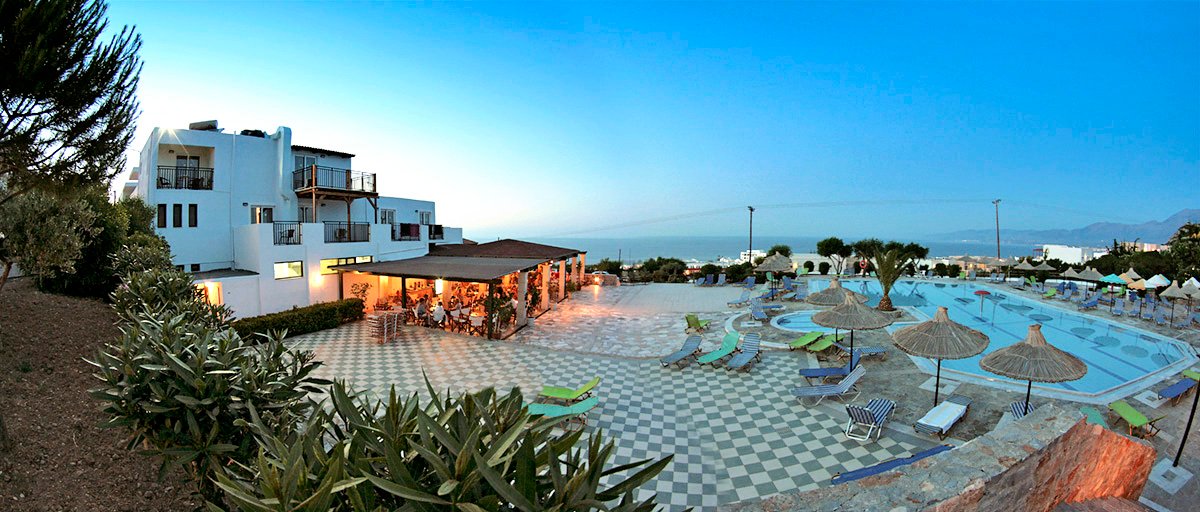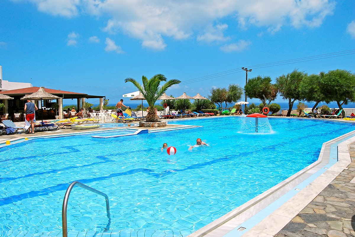 Położony na wzniesieniu, z pięknym panoramicznym widokiem na morze i otaczające wzgórza, to przyjemne miejsce na beztroski, grecki wypoczynek. Blisko stąd do centrum miejscowości, gdzie warto spróbować lokalnych specjałów w okolicznych tawernach i poczuć prawdziwie wakacyjną atmosferę w tętniących życiem knajpkach. Do dyspozycji Gości jest duży basen, brodzik dla dzieci, kort tenisowy, taras z widokiem na morze, restauracja i 2 bary.