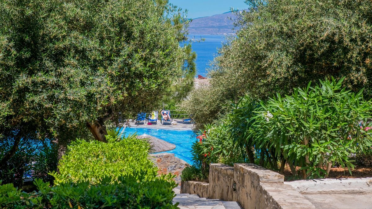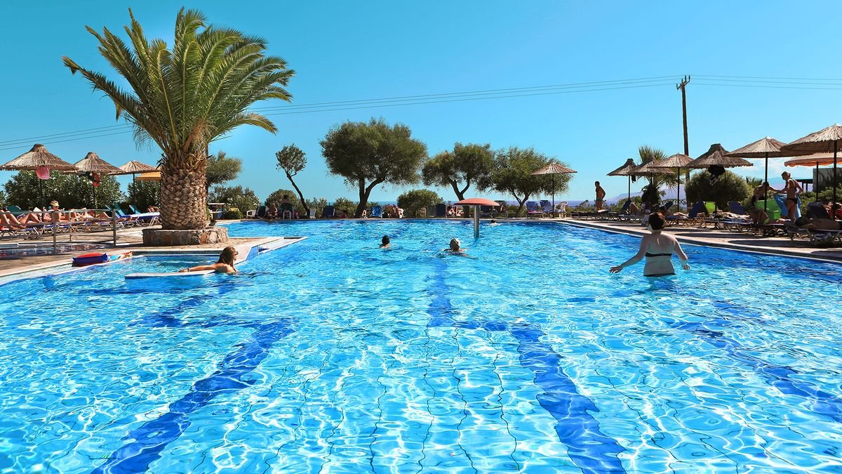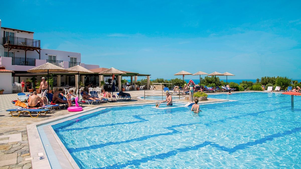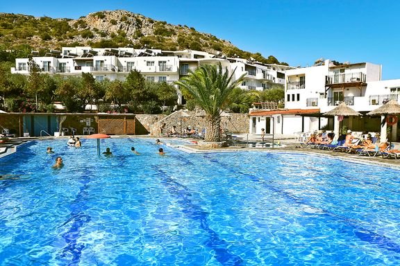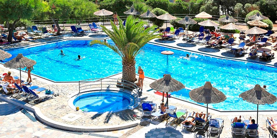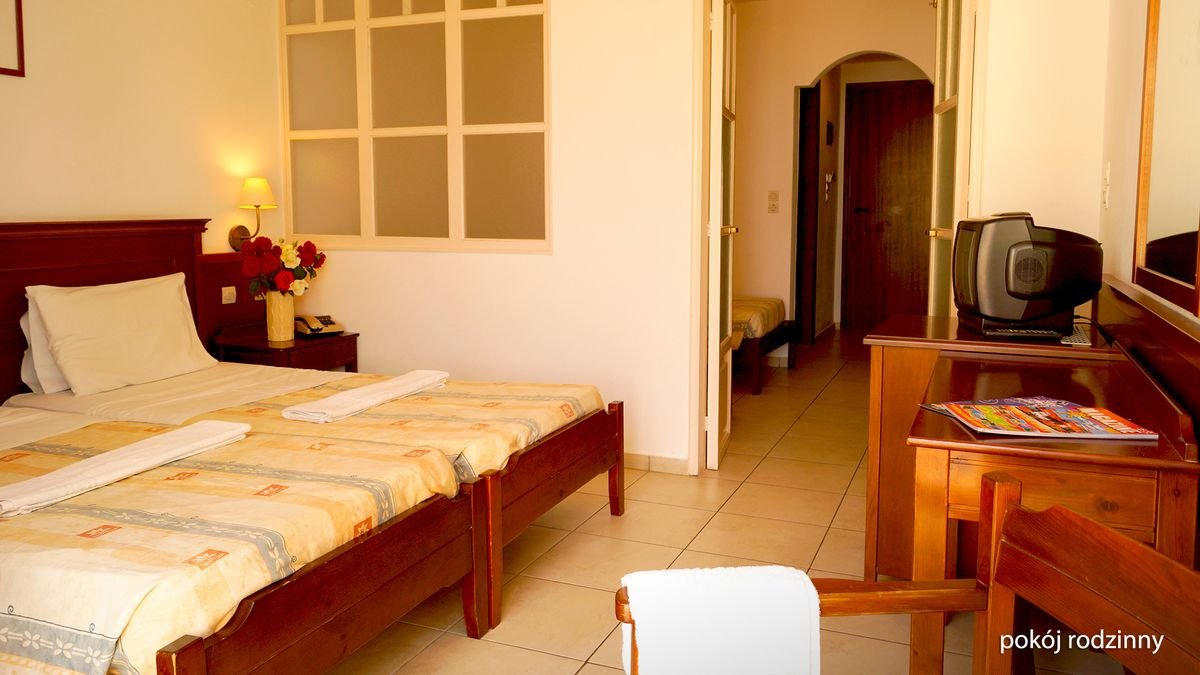 Położony na wzniesieniu, z pięknym panoramicznym widokiem na morze i otaczające wzgórza, to przyjemne miejsce na beztroski, grecki wypoczynek. Blisko stąd do centrum miejscowości, gdzie warto spróbować lokalnych specjałów w okolicznych tawernach i poczuć prawdziwie wakacyjną atmosferę w tętniących życiem knajpkach. Do dyspozycji Gości jest duży basen, brodzik dla dzieci, kort tenisowy, taras z widokiem na morze, restauracja i 2 bary.