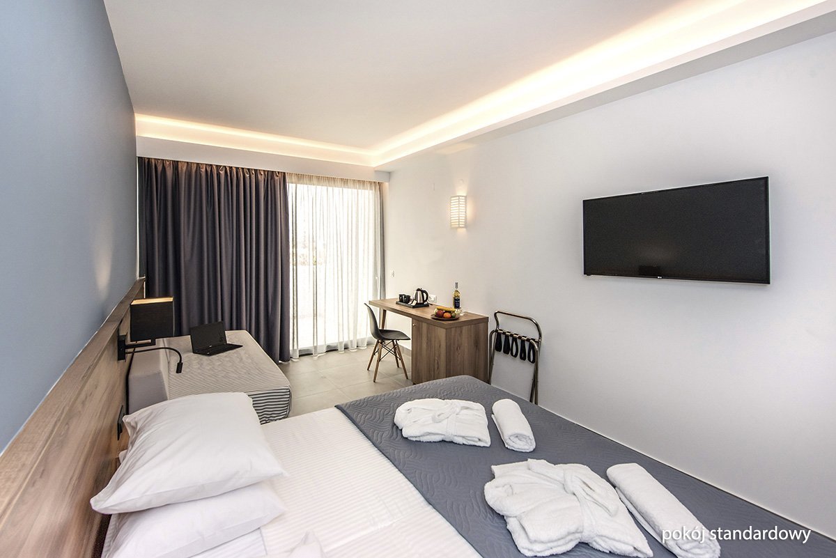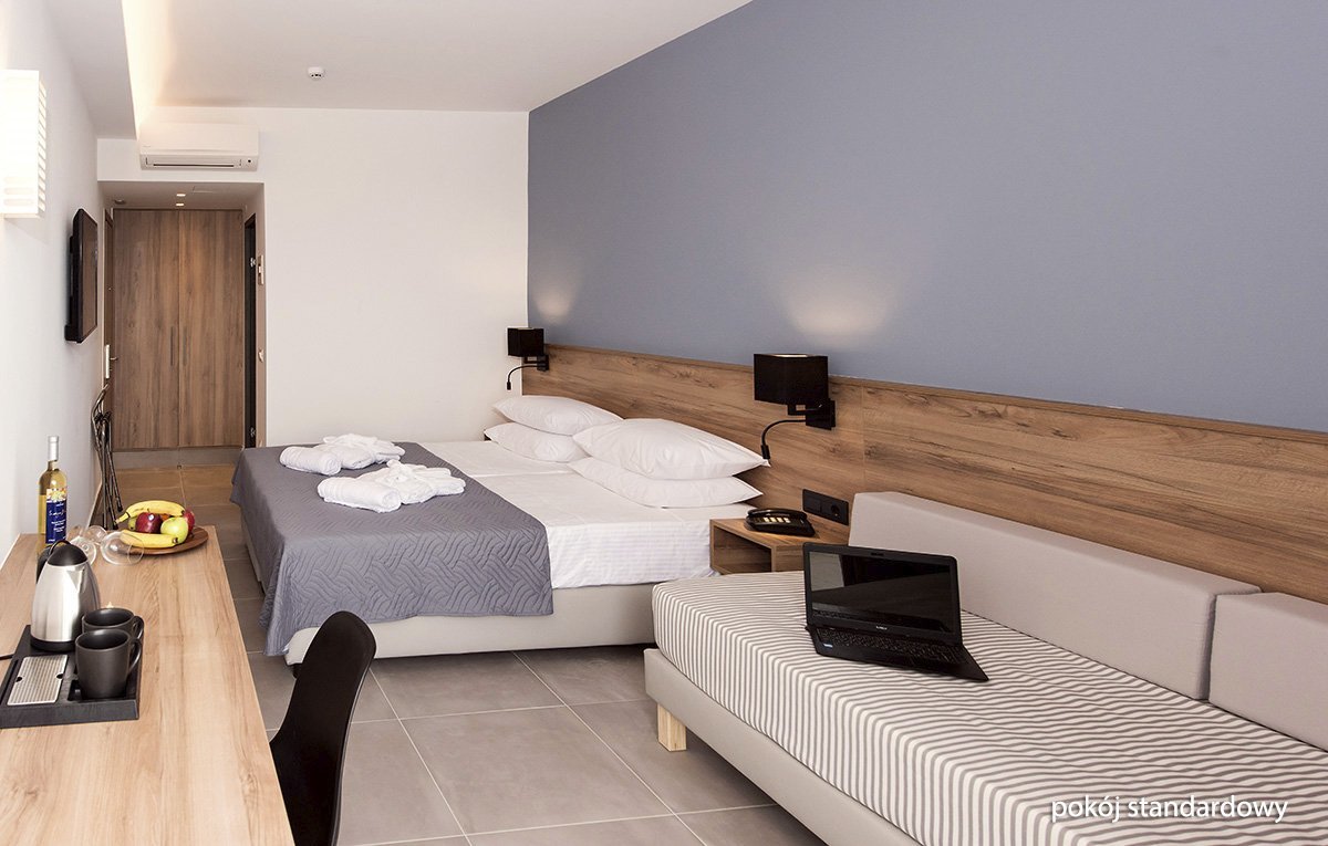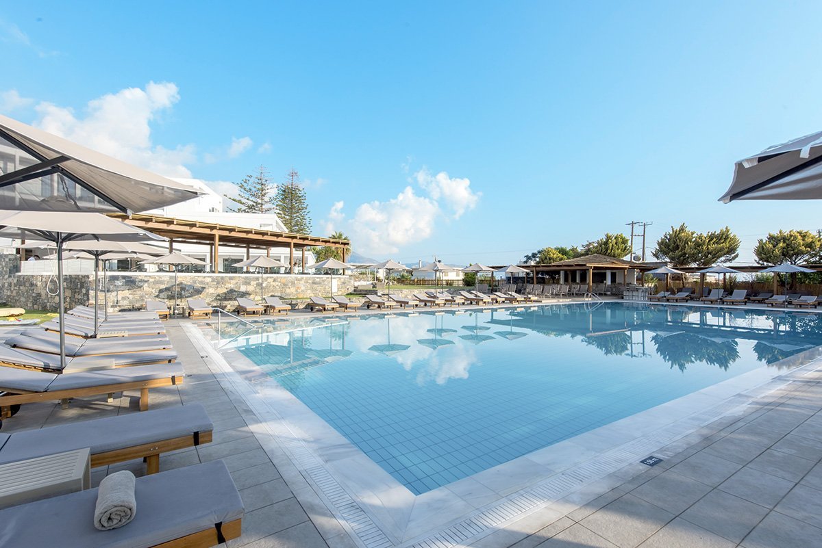 Elegancki, niedawno odnowiony, gwarantuje komfortowy wypoczynek w miłej atmosferze. Nowoczesne, przestronne wnętrza oraz stylowo zaprojektowane i wygodnie urządzone pokoje to atuty hotelu. Dodatkowo zadbany basen i piaszczysta plaża z wydzieloną częścią tylko dla Gości hotelu. W zasięgu krótkiego spaceru znajdują się sklepiki i bary. Blisko stąd także do stolicy wyspy, Heraklionu, z licznymi zabytkami i atrakcjami.
