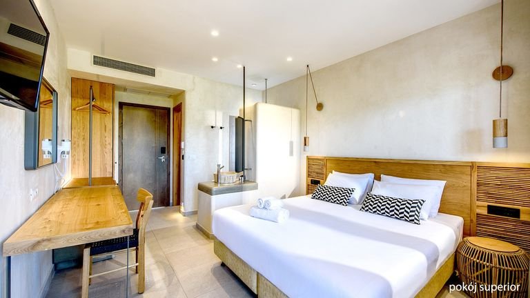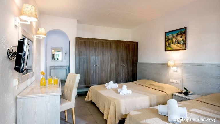 Szalej i wypoczywaj na największej greckiej wyspie! Czas spędza się tutaj zarówno spokojnie, jak i aktywnie, choćby na korcie tenisowym czy na siłowni. Można też wylegiwać się na pobliskiej, piaszczystej plaży, ale prawdziwą gratką są baseny i hotelowy aquapark z licznymi, kolorowymi zjeżdżalniami – w sam raz na wodne szaleństwo! Takie atrakcje na pewno spodobają się dzieciom, podobnie jak animacje oraz miniklub, plac i sala zabaw. Jeśli dołożymy do tego przestronne pokoje i sympatyczny, chwalony przez Gości personel, otrzymamy przepis na idealny, rodzinny urlop. Zero nudy, mnóstwo świetnej rozrywki – czas na wielkie, greckie wakacje!
