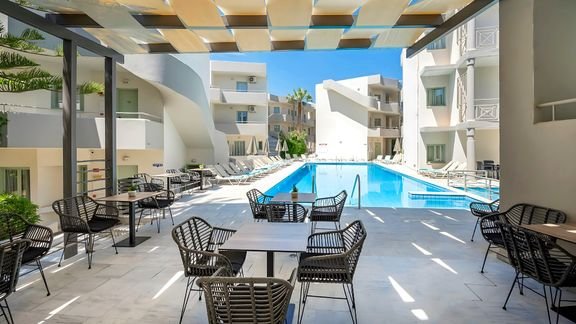 Stylowy hotel położony blisko plaży i centrum znanego z drzewek eukaliptusowych Georgioupolis to idealne miejsce na niezapomniane greckie wakacje! Wyróżniający się przyjazną atmosferą i komfortowymi wnętrzami, pełen jest klimatu wakacyjnej beztroski. Goście mogą korzystać z zadbanego basenu, idealnego na chwilę orzeźwienia i wodne szaleństwo, restauracji, w której podawana jest prawdziwa grecka kuchnia oraz z przestronnych pokoi, wyposażonych we wszystko, co potrzebne do pobytu z dala od trosk. W odległości krótkiego spaceru znajduje się piaszczysta plaża i centrum miasteczka, posiadające wiele klimatycznych restauracji i knajpek i sklepów. Poczuj niepowtarzalny klimat Krety, który niezmiennie oczarowuje przyjezdnych.