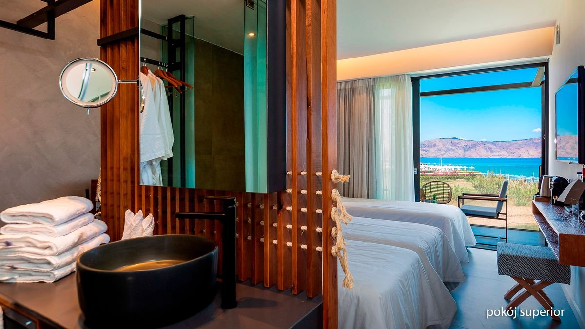 Prawdziwa oaza spokoju i komfortu, gdzie zapomnisz o codziennym pośpiechu i stresie. Podziwiaj niesamowity widok na niekończące się turkusowe Morze Egejskie z fantastycznej plaży tuż przy hotelu, zrelaksuj się na leżaku przy basenie, wybierz się na odprężające zabiegi do centrum spa i rozsmakuj się w pysznych daniach serwowanych w hotelowych restauracjach. Do dyspozycji Gości są eleganckie, komfortowe pokoje z bocznym lub frontalnym widokiem na morze, urządzone z dbałością o każdy detal. Idealny wybór na romantyczne wakacje w formule „tylko dla dorosłych”.