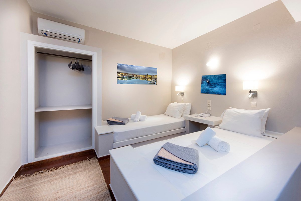 standardowy: 2-os. (możliwość 1 dostawki), ok. 20 m², zadbany, indywidualnie sterowana klimatyzacja, łazienka (prysznic, wc; suszarka), telewizja satelitarna, polskie programy, telefon, lodówka, zestaw do kawy/herbaty; za opłatą: internet bezprzewodowy (ok. 10 EUR/tydz.), sejf (ok. 20 EUR/tydz.); bezpłatne łóżeczko dla dziecka do 2 lat na zamówienie przed przyjazdem; balkon, taras lub ogródek (stolik i krzesełka); rodzinny: 2-os. (możliwość 2 dostawek), ok. 30 m², zadbany, pokój dzienny i sypialnia, wyposażenie jak pokoju standardowym.