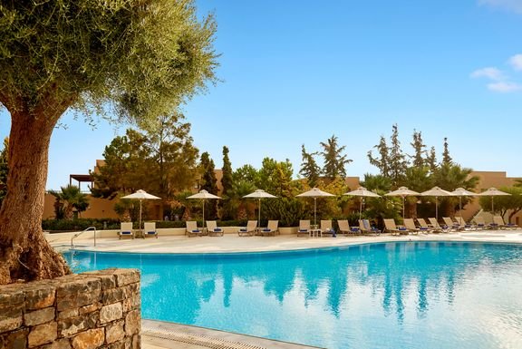Prawdziwa, wakacyjna oaza położona w górach, pośród bujnej zieleni, z cudownym widokiem na okolicę, to świetna opcja na rodzinne wakacje na Krecie. Resort urządzony jest ze smakiem, składa się z budynku głównego i kilku budynków bocznych z przestronnymi i funkcjonalnymi pokojami, które zachwycają stylowymi, rustykalnymi detalami. Mocną stroną jest tutaj kuchnia – do dyspozyji Gości jest aż 5 restauracji bazujących na wyrazistych, lokalnych smakach, z których słynie wyspa. Tu naładujesz baterie i prawdziwie odpoczniesz, a jeżeli lubisz spędzać urlop aktywnie, to polecamy popływać w jednym z basenów, skorzystać z szerokiej ofety sportowej lub pograć w golfa w okolicy, a na koniec dnia poleca się spa. W hotelu działa minikub dla dzieci, a w pobliżu parki rozrywki i akwarium, więc nie ma opcji na nudę!