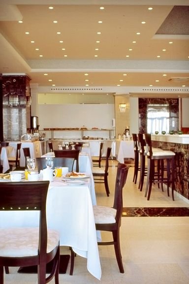 czterogwiazdkowy, stylowy, 50 pokoi, 5 budynków, 2 piętra, winda, lobby, całodobowa recepcja, restauracja Golden Apple – kuchnia lokalna i międzynarodowa, dostępne foteliki dla dzieci, tawerna Thalassa – á la carte, kuchnia lokalna i międzynarodowa, dostępne foteliki dla dzieci, bar przy basenie; centrum konferencyjne dla 250 osób, bezpłatny internet bezprzewodowy; za opłatą: room-service; akceptowane karty kredytowe: Visa, MasterCard.