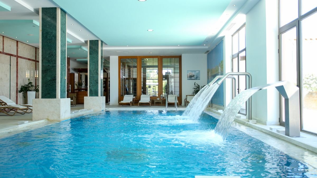 basen infinity, prostokątny kształt, słodka woda, ok. 120 m², gł. 1,6 m, brodzik dla dzieci, słodka woda, ok. 4 m², gł. 0,6 m, przy basenie bezpłatne parasole, leżaki i ręczniki; siłownia; plac i pokój zabaw, miniklub (4-12 lat); centrum spa: bezpłatnie: basen kryty, słodka woda, ok. 35 m², gł. 0,7 m, sauna, hammam; płatne: zabiegi pielęgnacyjne.