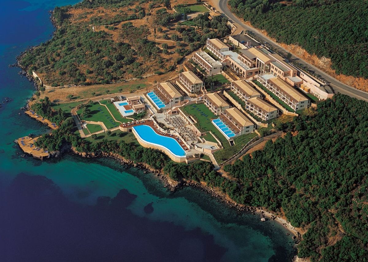 pięciogwiazdkowy, elegancki i nowoczesny, zbudowany w 2004 r., 116 pokoi, 6 budynków (w tym 2 typu willa), do 2 pięter, 5 wind, przestronne i eleganckie lobby, całodobowa recepcja, restauracja główna – dania w formie bufetu, kuchnia międzynarodowa, dostępne foteliki dla dzieci, restauracja Almyra przy basenie – à la carte, kuchnia grecka i śródziemnomorska, dostępne foteliki i menu dla dzieci, dania wegetariańskie, bar w lobby, bar przy basenie, bar przy plaży; kantor; centrum konferencyjne dla 500 osób, taras z widokiem na morze, śródziemnomorski ogród, bezpłatny internet bezprzewodowy, punkt internetowy; za opłatą: room-service, fryzjer, opiekunka do dziecka (na życzenie); występują różnice poziomów; akceptowane karty kredytowe: Visa, MasterCard, American Express.