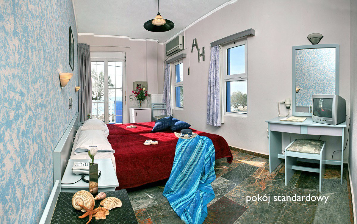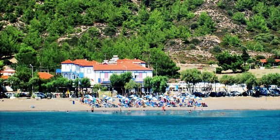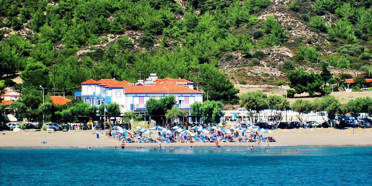 ok. 200 m od centrum VATERY, najbliższe sklepy i bary ok. 1 km od hotelu; ok. 60 km od portu lotniczego na Lesbos; przystanek autobusowy ok. 10 m od hotelu (Mitylena/ok. 7 EUR).