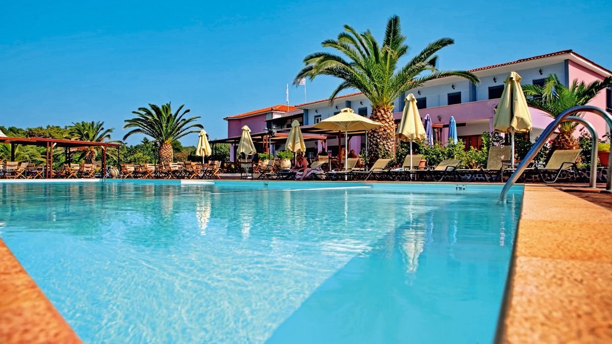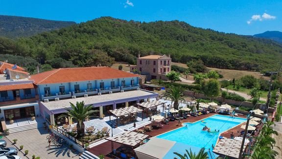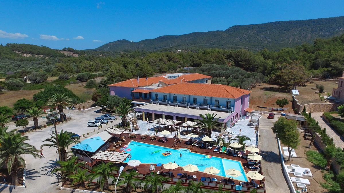 Położony w spokojnej lokalizacji, otoczony zielonymi wzgórzami, tuż przy pięknej plaży z bezpłatnym serwisem. Prowadzony przez grecką rodzinę, zbudowany w tradycyjnym stylu, zapewnia komfort i swobodną atmosferę. W hotelu wygodne pokoje standardowe i rodzinne. Centralnym punktem jest basen z podestem do opalania, dzieci wolny czas mogą spędzić pluskając się w wodzie lub bawiąc na placu zabaw.