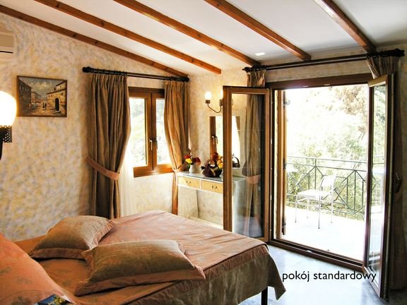 standardowy: 2-os. (możliwość 1 lub 2 dostawek dla dzieci – łóżko piętrowe), ok. 17 m², zadbany, indywidualnie sterowana klimatyzacja, łazienka (wanna, wc; suszarka), internet bezprzewodowy, telewizor, telefon, minibar (płatny); bezpłatne łóżeczko dla dziecka do 2 lat na zamówienie przed przyjazdem; balkon (stolik i krzesełka), widok na ogród, góry lub basen; rodzinny: 4-os., 2 pokoje oddzielone drzwiami, ok. 26-36 m², wyposażenie jak w pokoju standardowym.