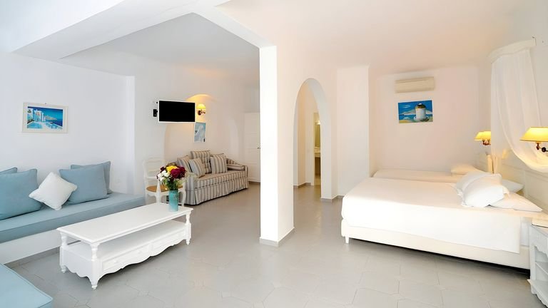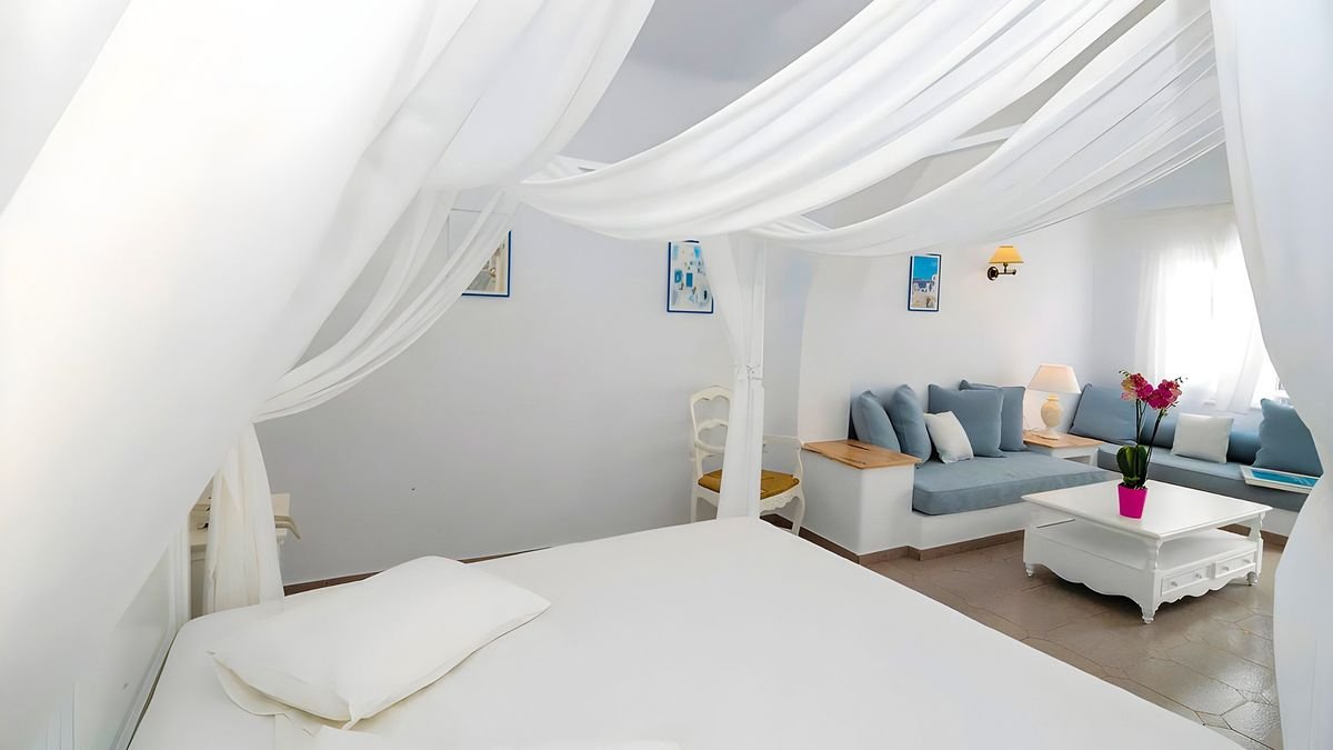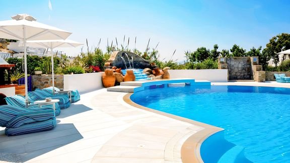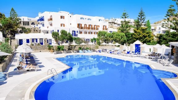 Marzysz o wakacjach pełnych luzu, słońca i relaksu wśród śródziemnomorskiej zieleni? Zanurz się w kameralnej atmosferze na greckiej wyspie Mykonos zaledwie kilka kroków od morza i piaszczystej plaży! W ciągu dnia odpocznij przy basenie z wydzieloną częścią dla dzieci, a wieczorem wybierz się na spacer po okolicy, by jeszcze lepiej poczuć klimat tego miejsca. Koniecznie spróbuj też lokalnych smaków Grecji w hotelowej restauracji i wypij ulubiony koktajl pod gwiazdami w barze przy basenie.