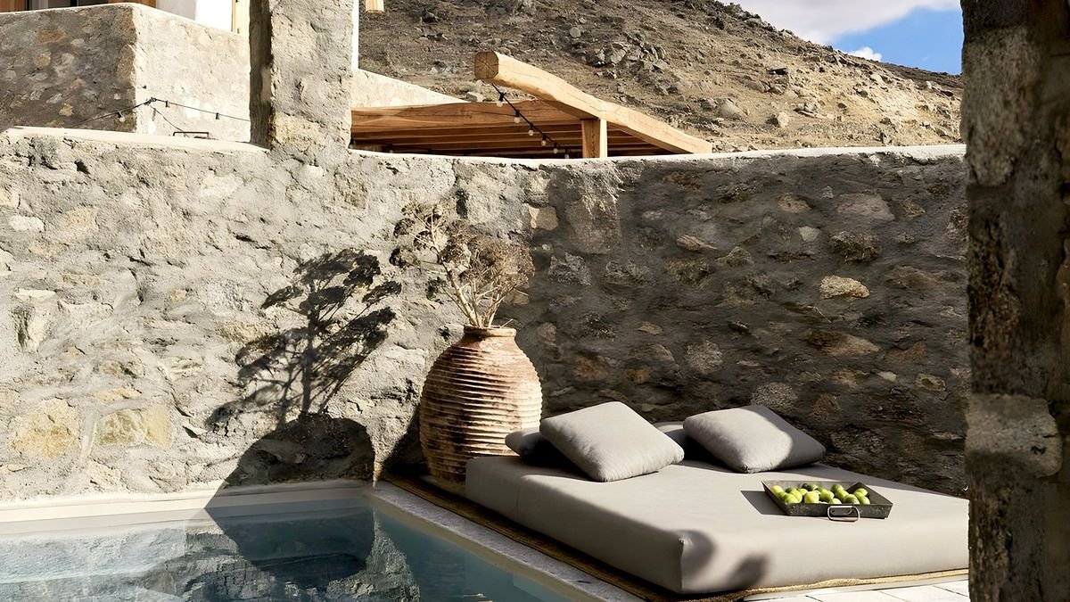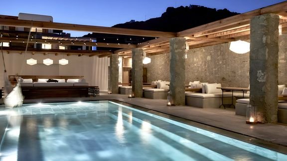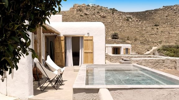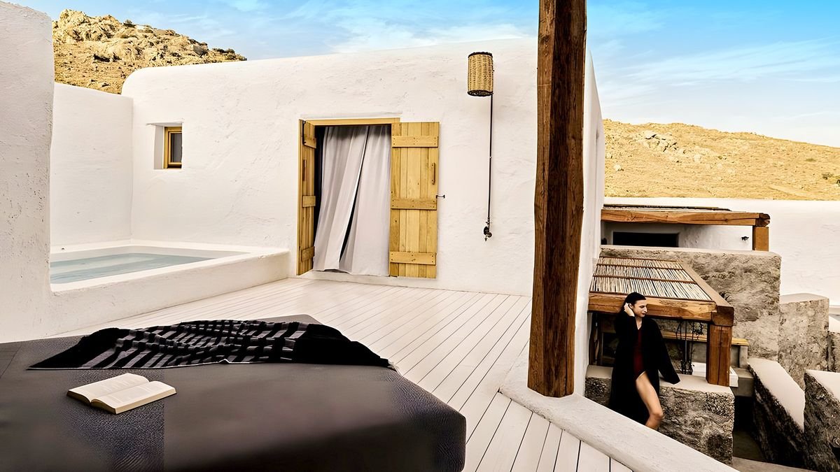 Idealny na romantyczne wakacje w miejscu, gdzie połączenie architektury w stylu Cyklad z dbałością o szczegóły i surowością krajobrazu gwarantuje niezapomniane wrażenia. Praktykując zasadę zero-waste i podejście eco-friendly oraz korzystając z usług lokalnych dostawców i odtwarzając tradycyjne greckie przepisy, szef kuchni zaprasza do spróbowania pysznych dań w restauracji. Pozwól sobie na relaks w basenie, odwiedź kino, a jeśli chcesz zadbać również o sylwetkę – czeka na Ciebie siłownia. Ucieknij od codzienności na Mykonos i zanurz się w luksusowej i kameralnej atmosferze!