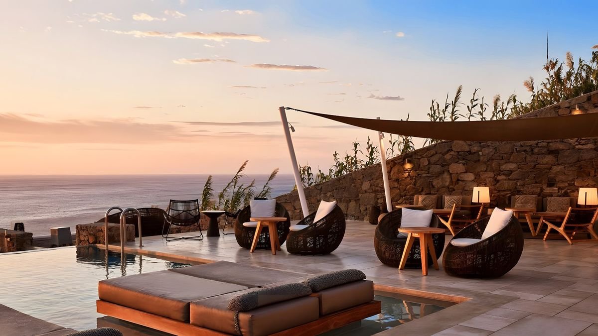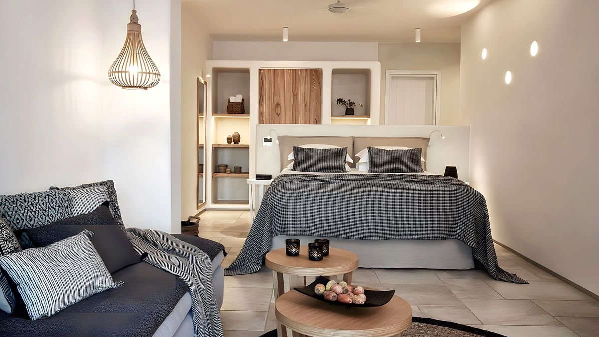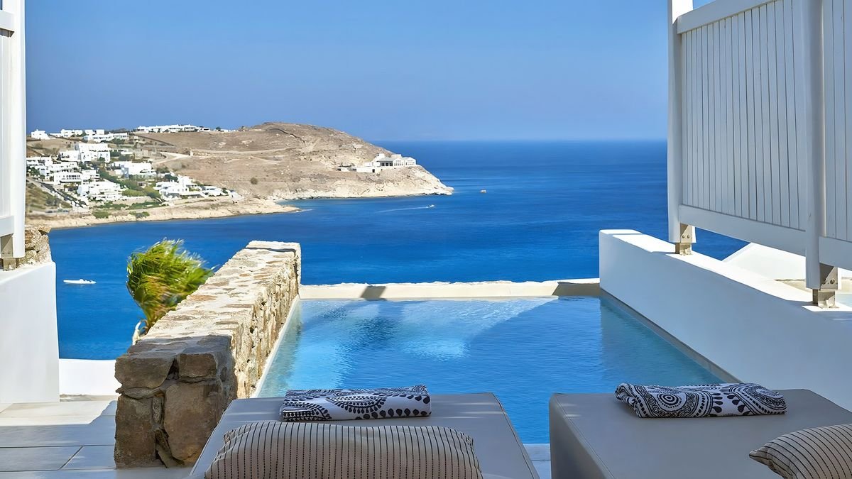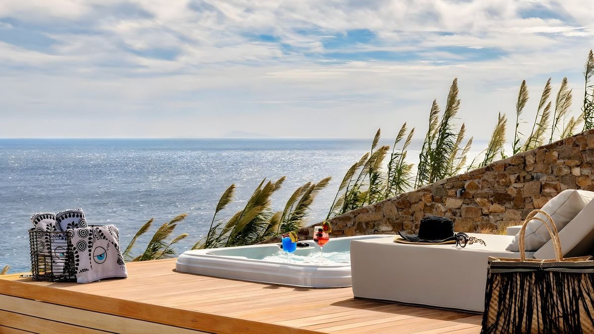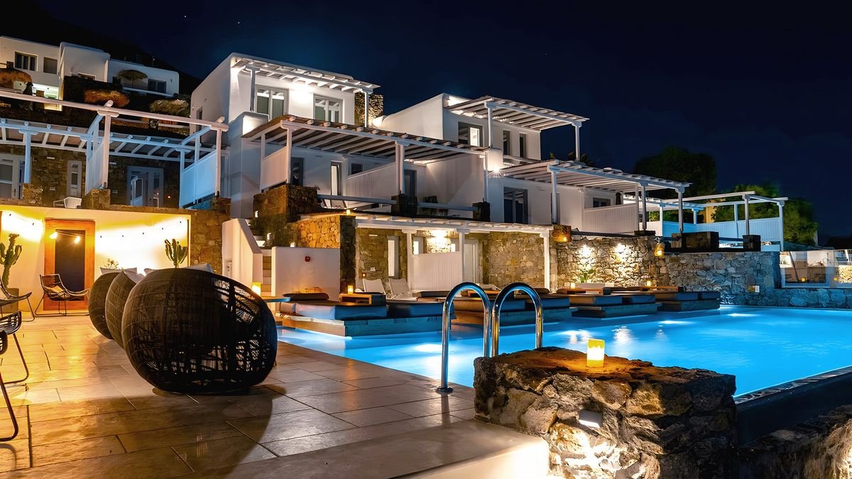 Posmakuj greckich wakacji, relaksując się na piaszczystej plaży lub przy basenie infinity, podziwiając niesamowite widoki na krystalicznie czystą wodę. Zaprojektowany w tradycyjnym stylu z nowoczesnym luksusem wśród naturalnego krajobrazu przyrody poleca się na urlop! Czekają na Ciebie wygodne pokoje wyposażone we wszystko, czego potrzebujesz, aby odpocząć i delektować się chwilą, część z nich posiada jacuzzi lub prywatny basen. W wolnej chwili koniecznie odwiedź stolicę wyspy – Chorę, zobaczysz tam białe, małe domy wśród wąskich i krętych uliczek a nad nimi białe wiatraki, które są symbolem Mykonos. Natomiast wykwintna kuchnia zaspokoi Twoje potrzeby kulinarne przez starannie dobrane produkty. Dedykowany wyłącznie dla dorosłych, jest idealnym miejscem na ucieczkę od codziennej rutyny i ekskluzywny wypoczynek w niesamowitej okolicy.
