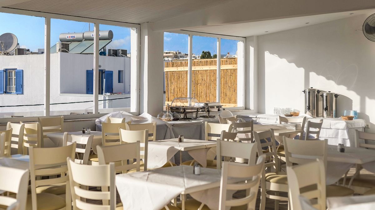 Zapraszamy na wypoczynek w samym sercu Cyklad! Blisko pięknej, długiej plaży, wkomponowany w labirynt charakterystycznych białych budynków, pozwala na zatopienie się w klimacie greckich wysp. To świetny wybór, jeśli chcesz odpocząć w miejscu, w którym wszystko masz pod ręką! W zasięgu spaceru jest centrum miasta z restauracjami, sklepami i miejscami historycznymi, oraz morze, które zachęcająca do kąpieli swoją czystą, błękitną wodą. Koniecznie wejdź też na dach – tam czeka na Ciebie basen i bar z widokiem na zatokę, gdzie możesz zrelaksować się po całym dniu.