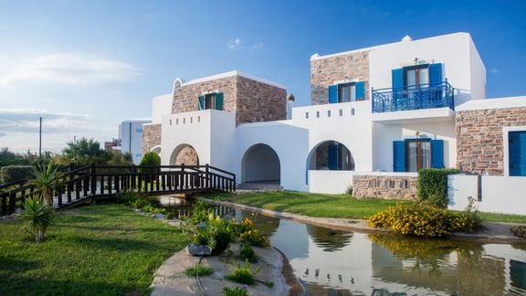 Wybierz się do spokojnego miejsca, gdzie na wyciągnięcie ręki czeka piaszczysta i urokliwa plaża, na której zrelaksujesz się na leżaku w promieniach greckiego słońca. Goście mogą orzeźwić się w dużym hotelowym basenie, a osoby ceniące aktywny wypoczynek mogą skorzystać z siłowni. Zbudowany w tradycyjnym cykladzkim stylu, oferuje klimatyczne pokoje z balkonami lub tarasami oraz restaurację serwującą wyśmienite dania.