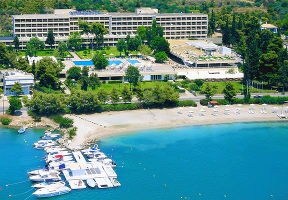 czterogwiazdkowy, zbudowany w 1975 r., odnowiony w 2000 r., 206 pokoi, 1 budynek, 5 pięter, 2 windy, przestronne lobby, całodobowa recepcja, restauracja Mycenae – dania w formie bufetu, kuchnia międzynarodowa, dania wegetariańskie, restauracja Aiolos przy basenie (czynna sezonowo, wykluczona z all inclusive) – á la carte, kuchnia włoska i śródziemnomorska, w restauracjach dostępne foteliki dla dzieci, bar Electra w lobby, bar przy basenie; minimarket; centrum konferencyjne dla 200 osób; za opłatą: internet bezprzewodowy, punkt internetowy, room-service (8.00-23.00), sejf w recepcji, opiekunka do dziecka; udogodnienia dla osób niepełnosprawnych (pokoje, podjazdy); karty kredytowe nie są akceptowane.