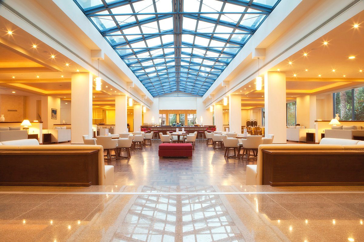 pięciogwiazdkowy, zbudowany w 1991 r., odnowiony w 2012 i 2017 r., 165 pokoi, 13 budynków, 1 piętro, 4 windy, przestronne i eleganckie lobby, całodobowa recepcja, restauracja Sky – dania w formie bufetu, restauracja á la carte (dodatkowo płatna), kuchnia międzynarodowa, dostępne foteliki dla dzieci, dania wegetariańskie, 3 bary, w tym przy basenie (czynny: czerwiec-wrzesień) i na plaży; sejf w recepcji, minimarket, parking; centrum konferencyjne dla 600 osób; ogród; bezpłatny internet bezprzewodowy w miejscach ogólnodostępnych; za opłatą: room-service, opiekunka do dziecka (na zamówienie); udogodnienia dla niepełnosprawnych; akceptowane karty kredytowe: Visa, MasterCard, American Express, Diners Club.
