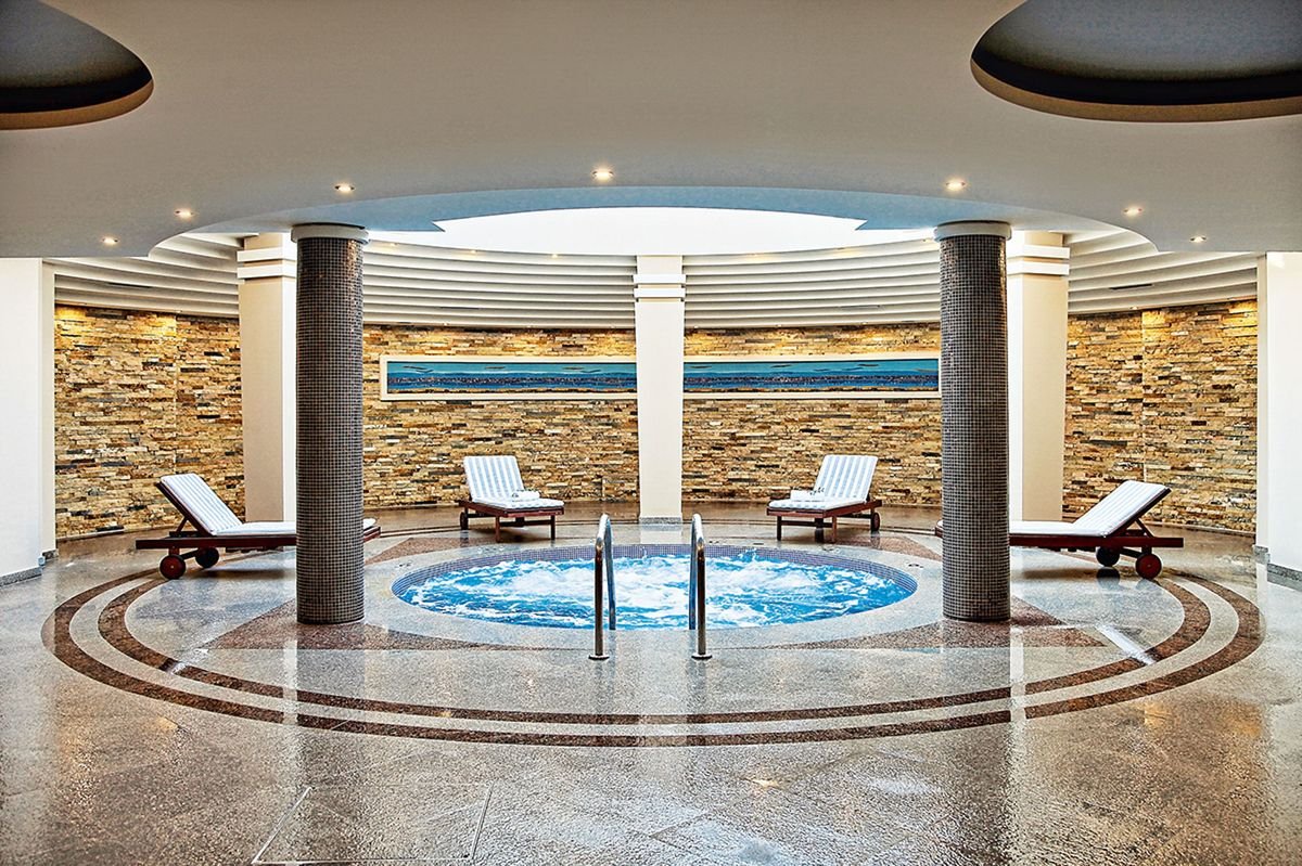 2 baseny, woda mieszana i słodka, ok. 600 m², gł. 0,6-1,6 m i ok. 130 m², gł. 0,8-2,8 m, brodzik dla dzieci, woda mieszana, ok. 55 m², gł. 0,2-0,4 m, przy basenach bezpłatne parasole i leżaki, ręczniki za kaucją (ok. 10 EUR); tenis stołowy, siatkówka, rowery; pokój i plac zabaw dla dzieci, animacje dla dorosłych i dzieci (15.06-15.09), raz w tygodniu muzyka na żywo; za opłatą: bilard; centrum spa: bezpłatnie: kryty basen, słodka woda, ok. 90 m², siłownia; płatne: jacuzzi, sauna, hammam, fryzjer, zabiegi pielęgnacyjne; raz na pobyt wizyta w spa gratis (sauna, hammam, jacuzzi).