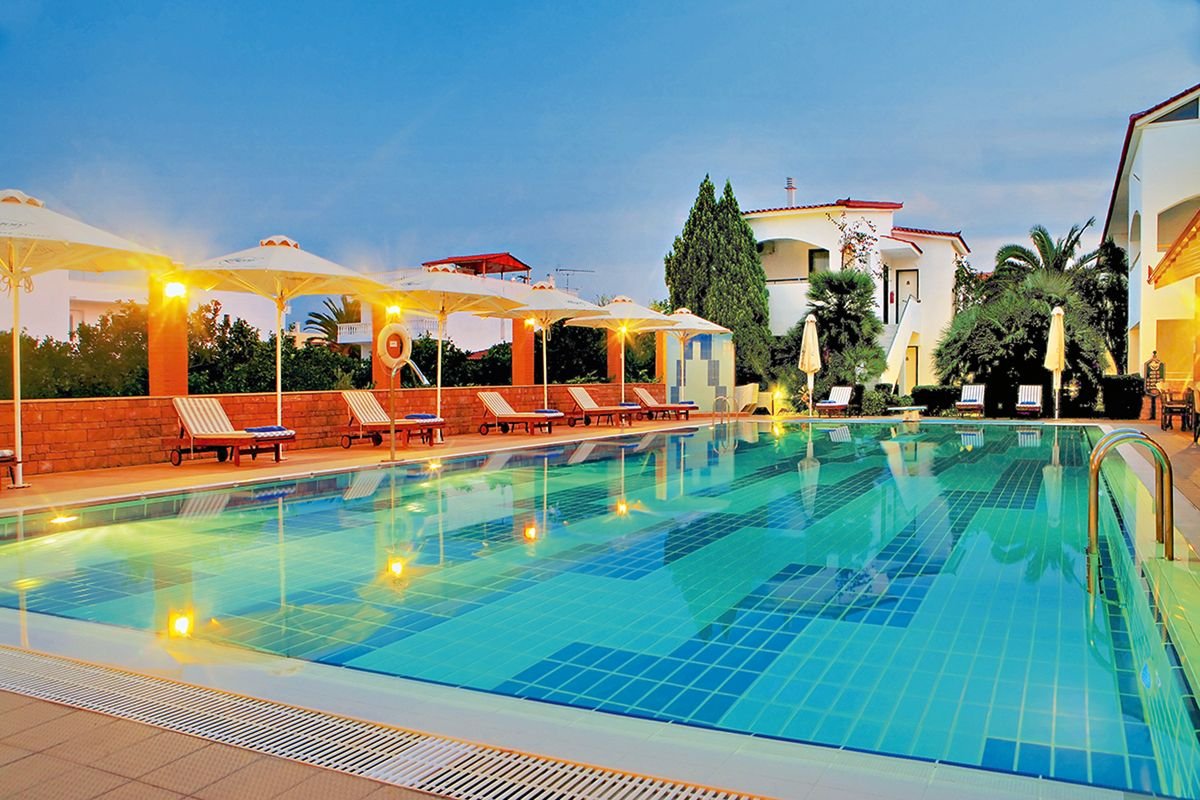 Kompleks hotelowy doskonale przygotowany na wypoczynek dla rodzin z dziećmi. Położony blisko plaży, w zadbanym ogrodzie z basenami i brodzikiem jest doskonałym miejscem na relaks i zabawę. Pokoje standardowe są komfortowo urządzone, a przestronne pokoje maisonette pomieszczą nawet 4 osoby. Goście mogą korzystać z restauracji, 3 barów i szerokiej oferty sportowo-rekreacyjnej. Dla dzieci przygotowano animacje i brodzik.