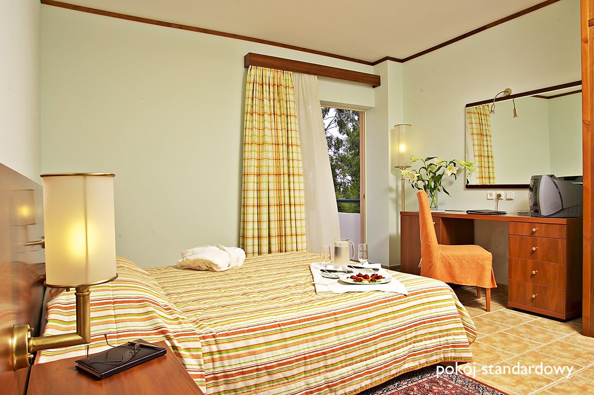 standardowy: 2-os. (możliwość 1 dostawki), ok. 17-20 m2, indywidualnie sterowana klimatyzacja, łazienka (wanna lub prysznic, wc; suszarka), telewizja satelitarna, telefon, sejf, minibar (płatny); bezpłatne łóżeczko dla dziecka do 2 lat na zamówienie przed przyjazdem; balkon (stolik i krzesełka); maisonette: dla 3 os. (możliwość 1 dostawki), ok. 40 m², wyposażenie jak w pokoju standardowym, dodatkowo sypialnia na atresoli; pokój maisonette za dopłatą.