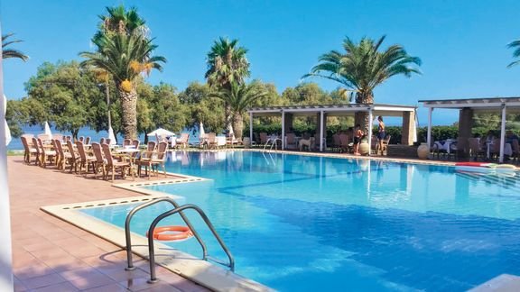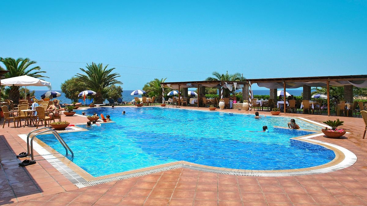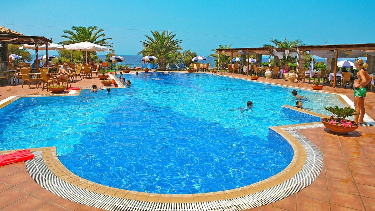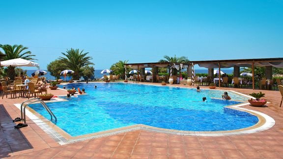 basen, nieregularny kształt, słona woda, ok. 180 m2, gł. 0,8-3,5 m, przy basenie bezpłatne parasole i leżaki, ręczniki płatne (ok. 1 EUR/dzień); kort tenisowy, tenis stołowy; plac zabaw dla dzieci.