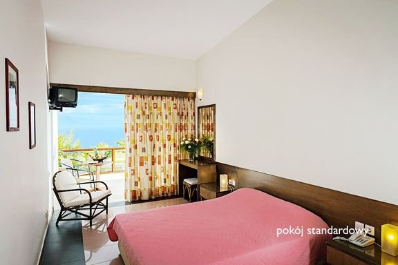 standardowy: 2-os. (możliwość 1 dostawki), ok. 18 m², zadbany, klimatyzowany (czerwiec-wrzesień), łazienka (wanna lub prysznic, wc; suszarka do wypożyczenia w recepcji), telewizja satelitarna, telefon, lodówka; bezpłatne łóżeczko dla dziecka do 2 lat na zamówienie przed przyjazdem; balkon (stolik i krzesełka); widok na morze za dopłatą;