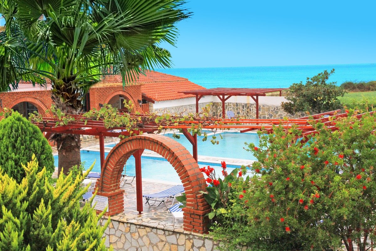 Otoczony śródziemnomorskim ogrodem o powierzchni 4 tys. m², położony tuż przy pięknej, piaszczystej plaży z bezpłatnym serwisem. To idealne miejsce dla wszystkich, którzy chcą odpocząć w spokojnym miejscu, w otoczeniu przyrody, z dala od gwarnych kurortów. W hotelu są wygodne pokoje standardowe i aż pięcioosobowe pokoje rodzinne – wszystkie z balkonami i pięknym widokiem na morze. Dla rodzin z dziećmi przygotowano dodatkowe atrakcje, takie jak basen czy zacieniony plac zabaw. Hotelowa tawerna na plaży to świetne miejsce na klimatyczną kolację i kosztowanie lokalnych specjałów, można stąd również podziwiać zachwycający zachód słońca.