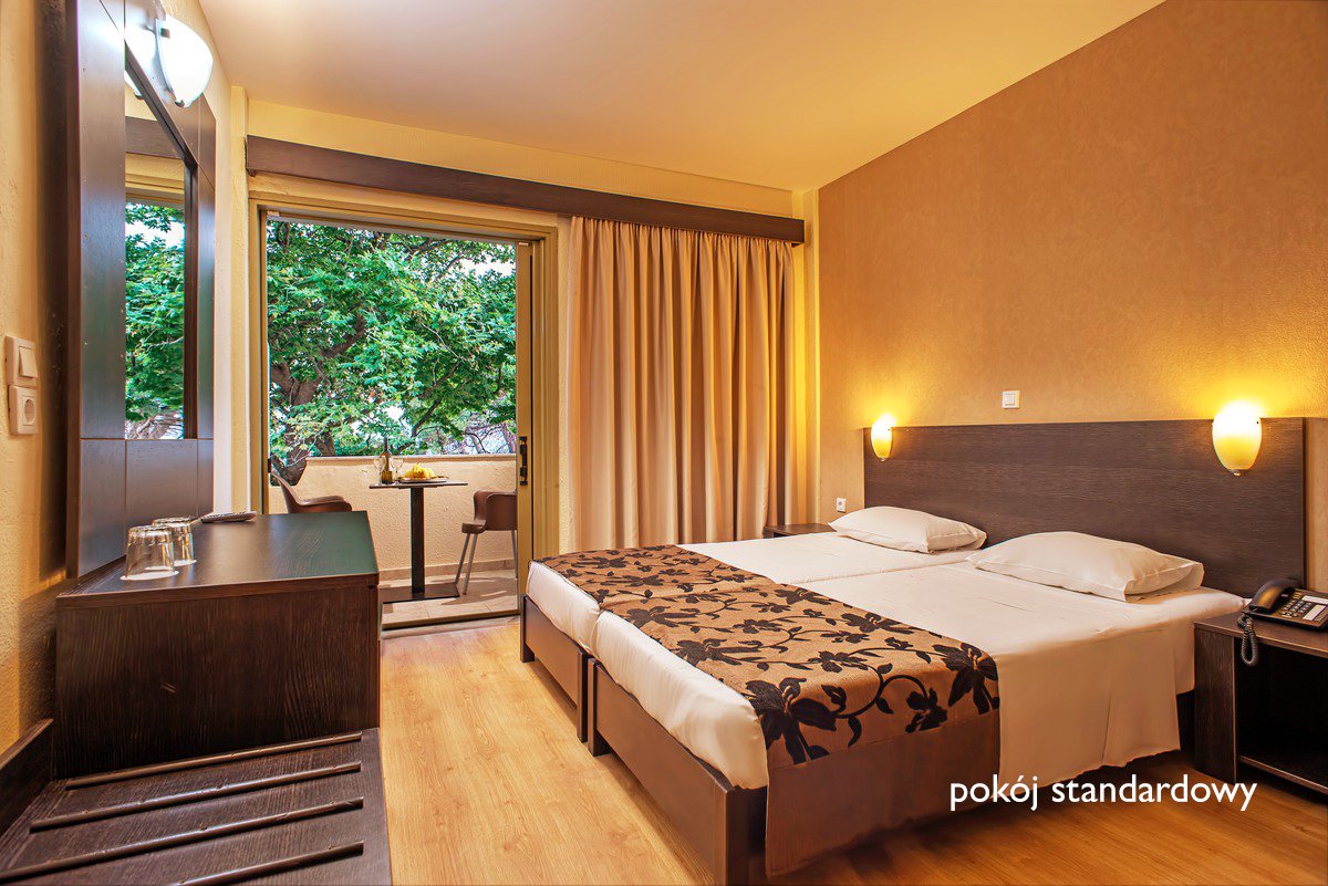 standardowy: 2-os. (możliwość 1 dostawki dla dziecka), ok. 22 m², zadbany, indywidualnie sterowana klimatyzacja (bezpłatna: czerwiec-wrzesień), łazienka (wanna lub prysznic, wc; suszarka), internet bezprzewodowy, telewizor, telefon, lodówka, sejf (płatny); bezpłatne łóżeczko dla dziecka do 2 lat na zamówienie przed przyjazdem; balkon (stolik i krzesełka); widok na morze za dopłatą; rodzinny: 2-os. (możliwość 1 lub 2 dostawek dla dzieci), ok. 22 m², wyposażenie jak w pokoju standardowym.