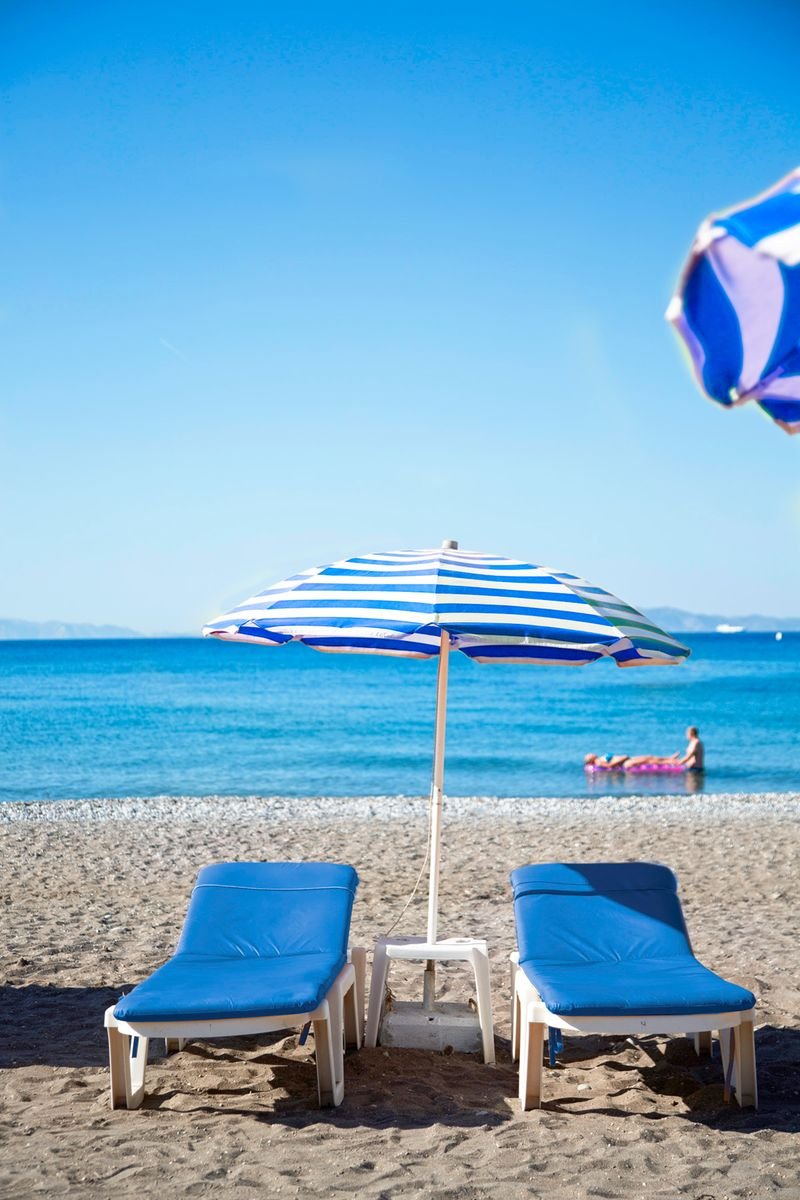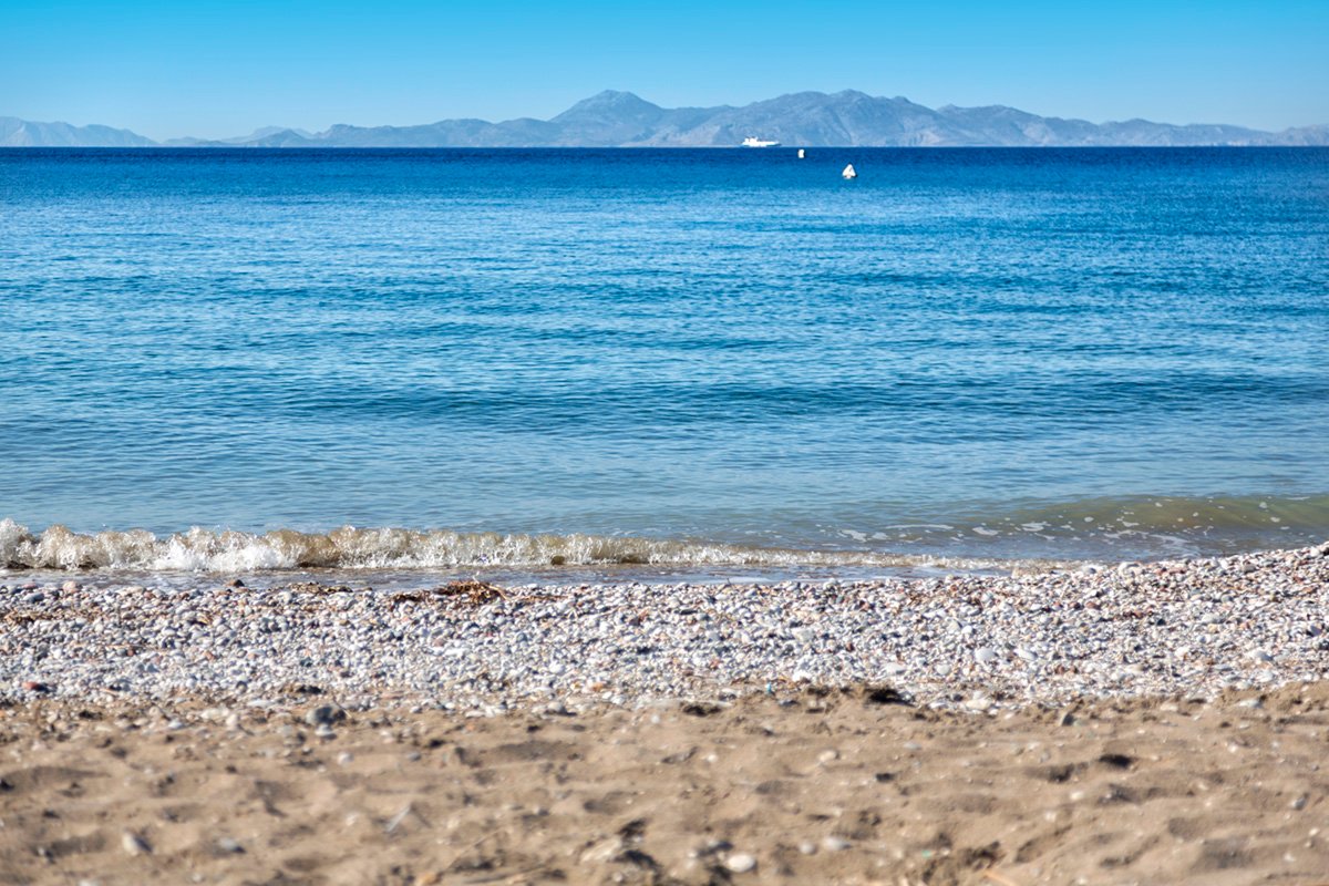 Ixia Beach, publiczna, piaszczysto-żwirkowo-kamienista, łagodne zejście do morza, zalecane obuwie ochronne, ok. 50 m od hotelu, przejście tunelem podziemnym, bezpłatne parasole i leżaki, ręczniki za kaucją (ok. 10 EUR).