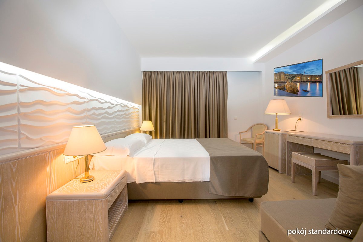 standardowy: 2-os. (możliwość 1 dostawki), ok. 25 m², nowocześnie urządzony, indywidualnie sterowana klimatyzacja, łazienka (wanna, wc; suszarka, kapcie), internet bezprzewodowy, telewizja satelitarna, telefon, minibar (codziennie uzupełniany w wino, piwo, napoje bezalkoholowe i wodę mineralną), sejf; bezpłatne łóżeczko dla dziecka do 2 lat na zamówienie przed przyjazdem; balkon (stolik i krzesełka), widok na ogród; boczny lub frontalny widok na morze za dopłatą; suite: 4-os. (możliwość 1 lub 2 dostawek), ok. 45 m², nowocześnie urządzony, 2 pokoje oddzielone drzwiami, indywidualnie sterowana klimatyzacja, łazienka (wanna lub prysznic, wc; suszarka, kapcie), wyposażenie jak w pokoju standardowym; boczny lub frontalny widok na morze za dopłatą; suite za dopłatą.