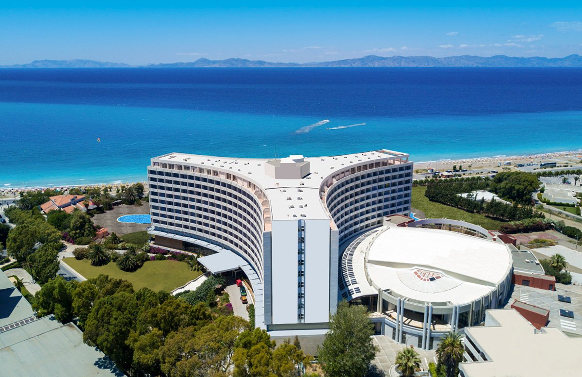 Jeden z większych hoteli na wyspie, świetnie położony parę kroków od plaży, w odległości spaceru od przepięknego, zabytkowego centrum stolicy wyspy – miasta Rodos. W pobliżu są też tawerny i sklepiki, miejscowość Ixia znana jest miłośnikom windsurfingu. Hotel oferuje idealne warunki do wypoczynku z dziećmi. Do dyspozycji Gości są 2 duże baseny: z morską i słodką wodą oraz leniwa rzeka. Dla smakoszy przygotowano kilka restauracji i barów oraz nowocześnie urządzone pokoje.