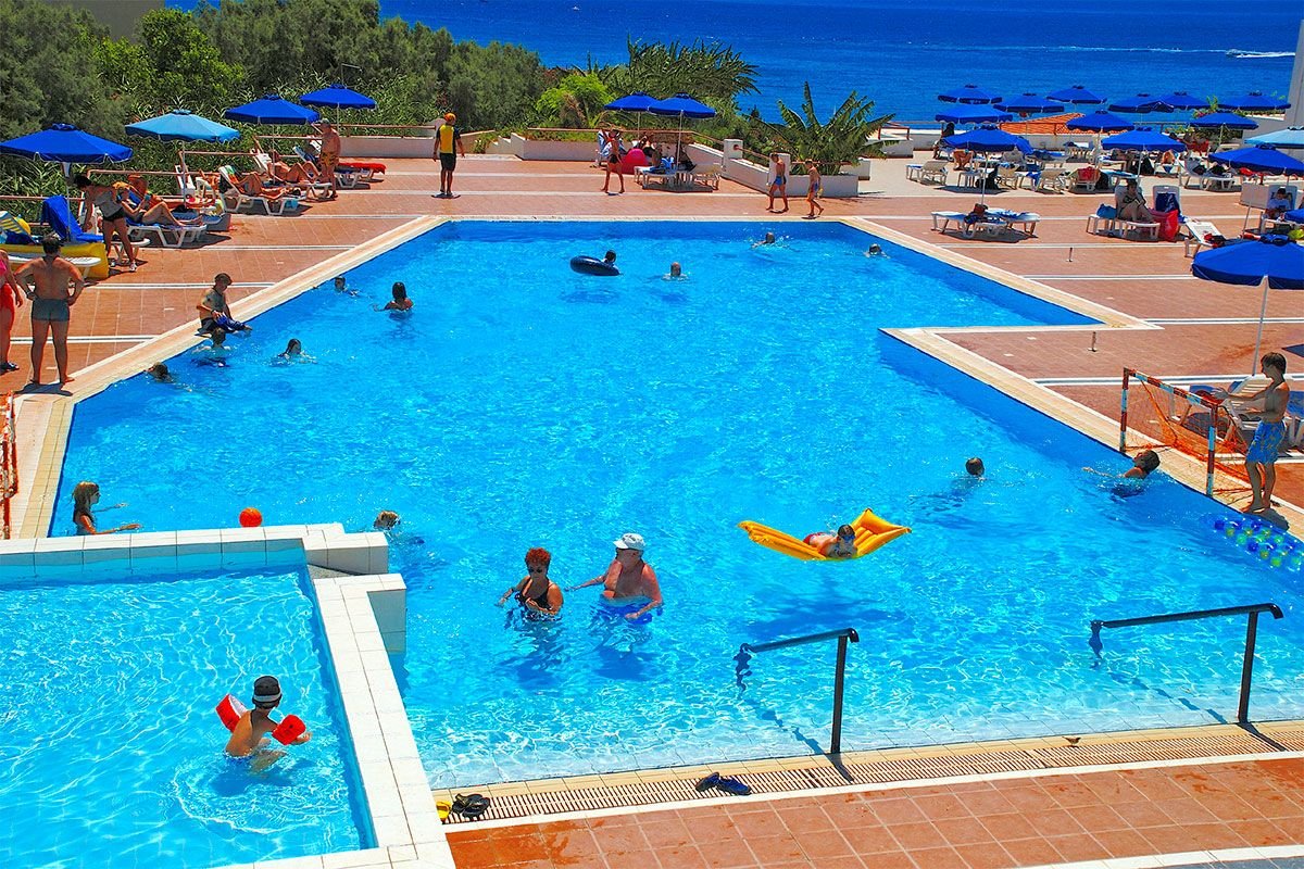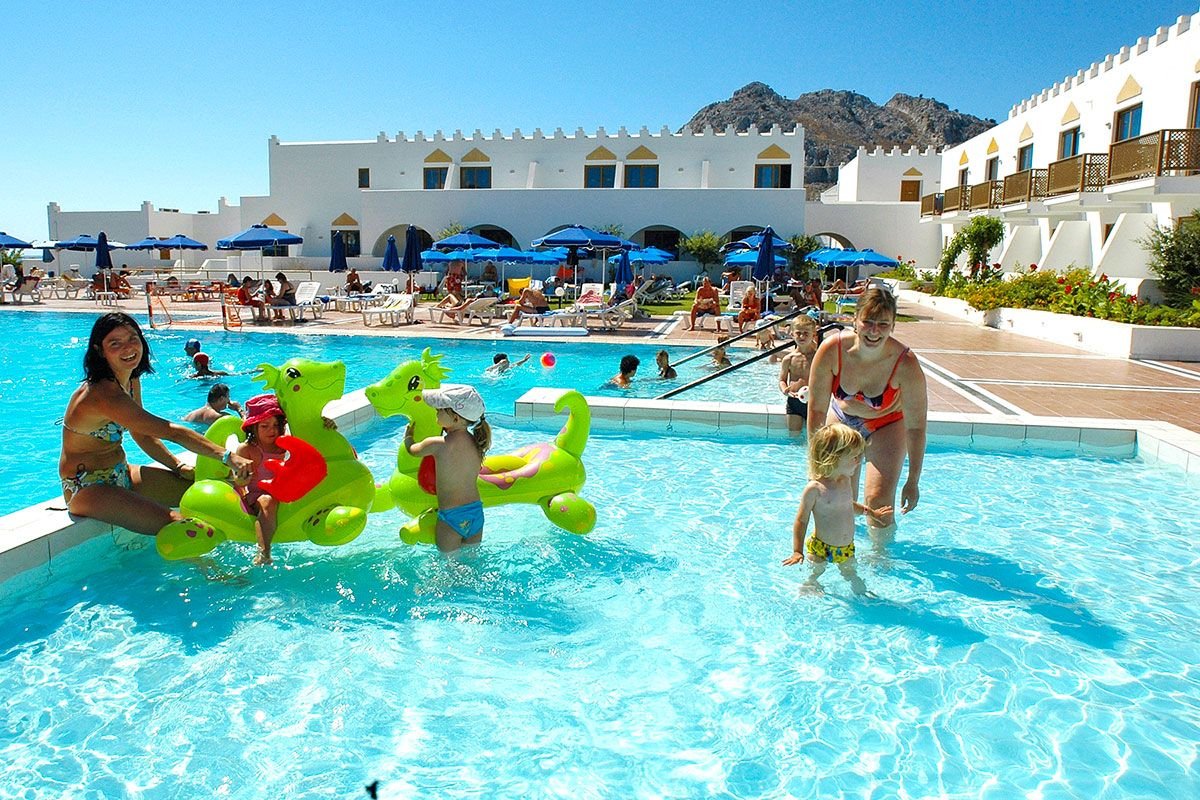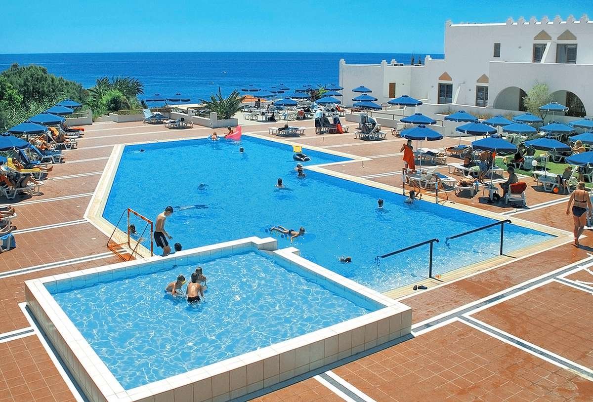 basen, słodka woda, ok. 450 m², gł. ok. 0,6-2,8 m, 2 baseny dla dzieci, słodka woda, ok. 64 m², gł. ok. 0,45 m, przy basenach bezpłatne parasole i leżaki, kryty basen, słodka woda, ok. 300 m², gł. ok. 1,4-1,7 m; kort tenisowy, tenis stołowy, mini piłka nożna, siatkówka plażowa, piłka wodna; program sportowy i fitnessowy z gimnastyką, stretchingiem i step aerobikiem prowadzone przez animatorów z Niemiec, amfiteatr, w którym organizowane są animacje dla dorosłych i dla dzieci oraz minidisco dla dzieci (4 razy/tydz.); plac zabaw i pokój zabaw dla dzieci, kluby dla dzieci (4-7, 7-11, 12-15 lat); raz w tygodniu wyjazd na rowerach z animatorami (5-6 EUR/dzień) do różnych miejsc tj: do Zatoki Quinna, do kościoła Matki Boskiej Tsambika oraz 7 Źródeł; za opłatą: jacuzzi i sauna (ok. 15 EUR/30 min), masaże, rowery (ok. 5-6 EUR), sporty wodne na plaży (oferta zewnętrzna), ok. 5 km od hotelu, 18-dołkowe pole golfowe w Afandou.