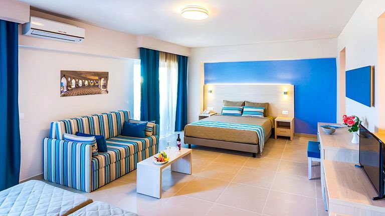 Rodzinne wakacje czas zacząć! Zatrzymaj się w miejscu, które pozwoli na spędzenie niezapomnianego urlopu w gronie najbliższych – czekają tu na Ciebie jasne, przestronne pokoje, w których odpoczniesz i nabierzesz sił przed licznymi animacjami i atrakcjami. Dorośli mogą spróbować swoich sił w wielu przygotowanych dla nich sportach i rozrywkach, a dzieci spędzą niezapomniane chwile podczas szaleństw na zjeżdżalniach i odkrywania placu zabaw. Kilka kroków dzieli Cię od urokliwej plaży z krystalicznie czystą wodą, która zachęca do kąpieli i spacerów o zachodzie słońca.