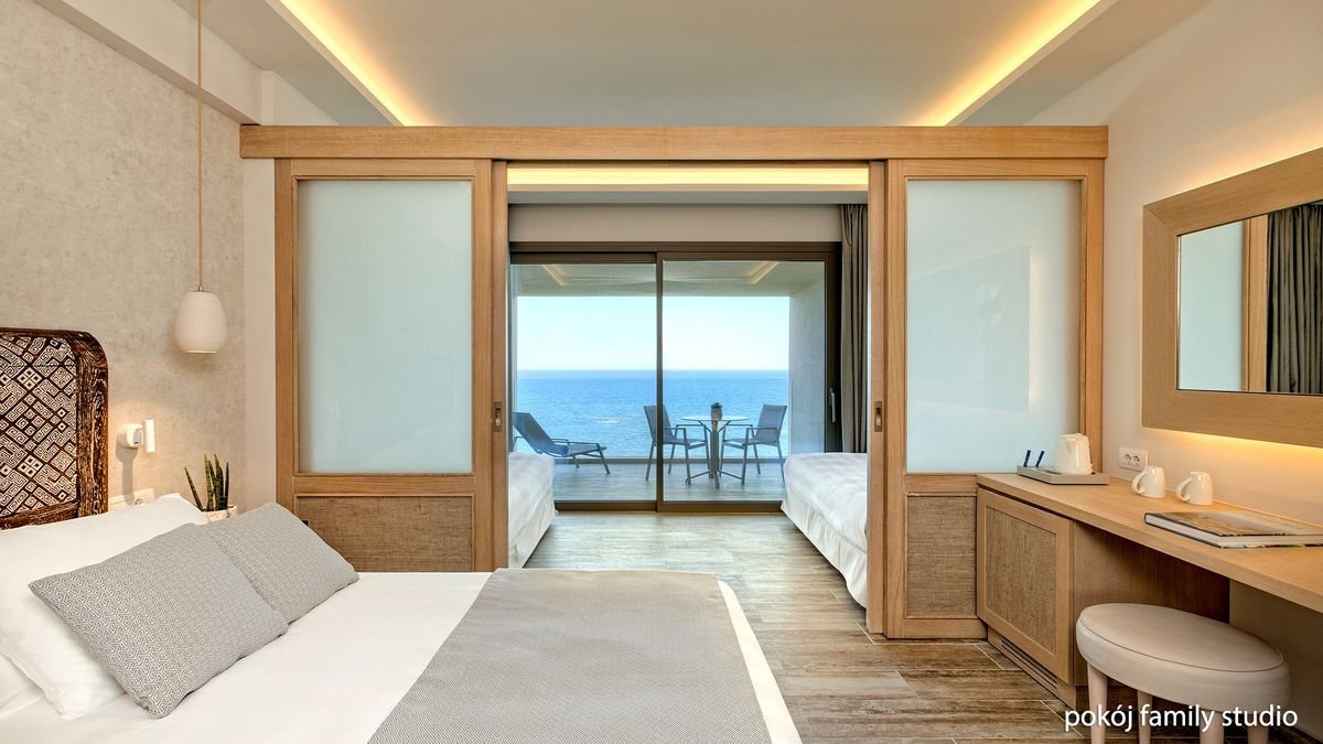 Nowoczesny i elegancki resort ze stylowymi wnętrzami, spełni oczekiwania nawet najbardziej wymagających osób. Położony tuż przy piaszczysto-żwirowej plaży, został zaprojektowany z dbałością o każdy szczegół, by Goście mogli poczuć tu jak największy komfort i wygodę. Idealny dla rodzin z dziećmi, dla których przygotowano masę atrakcji, m.in. aquapark, minikluby i urozmaicone animacje – tutaj nie ma miejsca na nudę! Komfortowy wypoczynek po aktywnym dniu zapewniają przestronne pokoje, a o dobre samopoczucie dba zawsze uśmiechnięta obsługa. Doskonałe miejsce na niezapomniane, greckie wakacje!